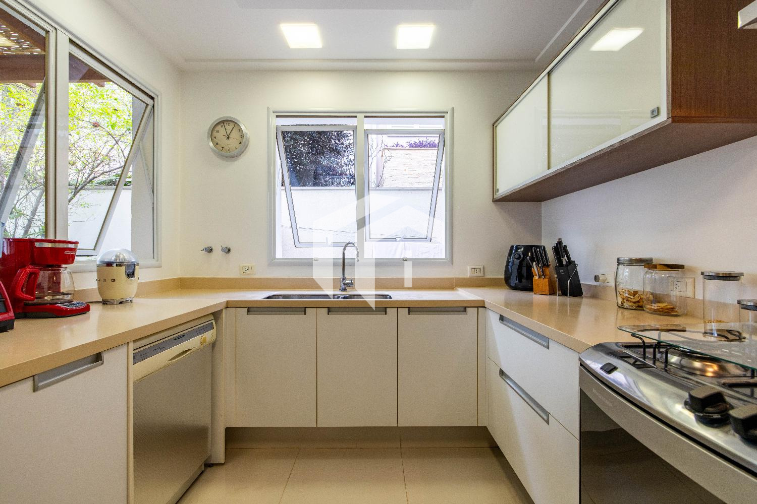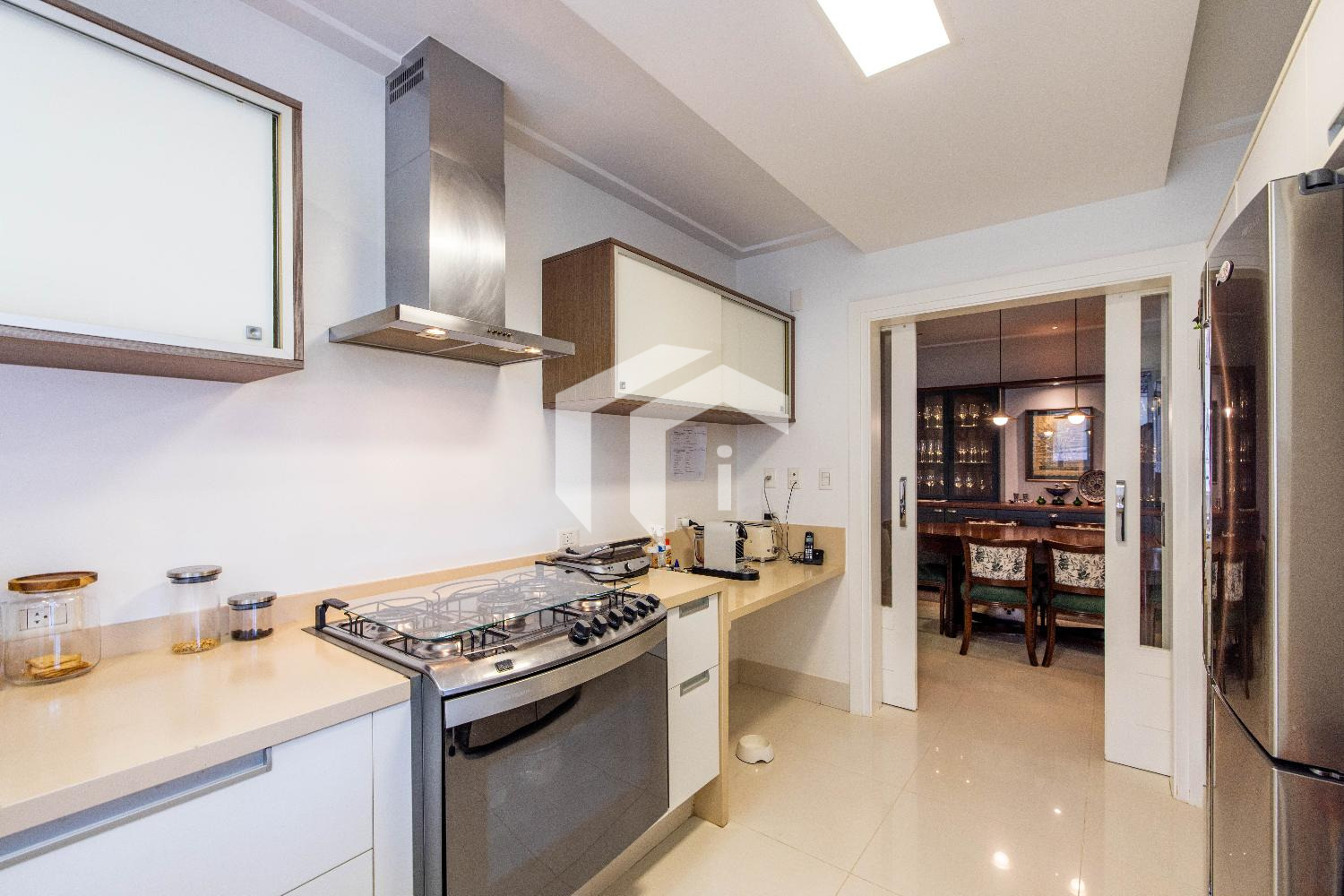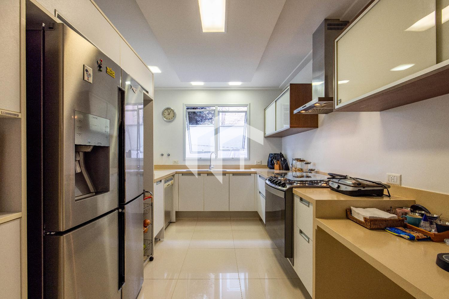 Cozinha repleta de planejados e com despensa, mais, uma copa de apoio e área de serviço com dependência completa.