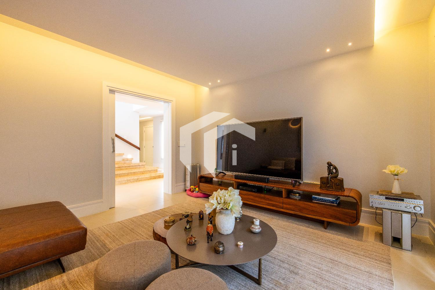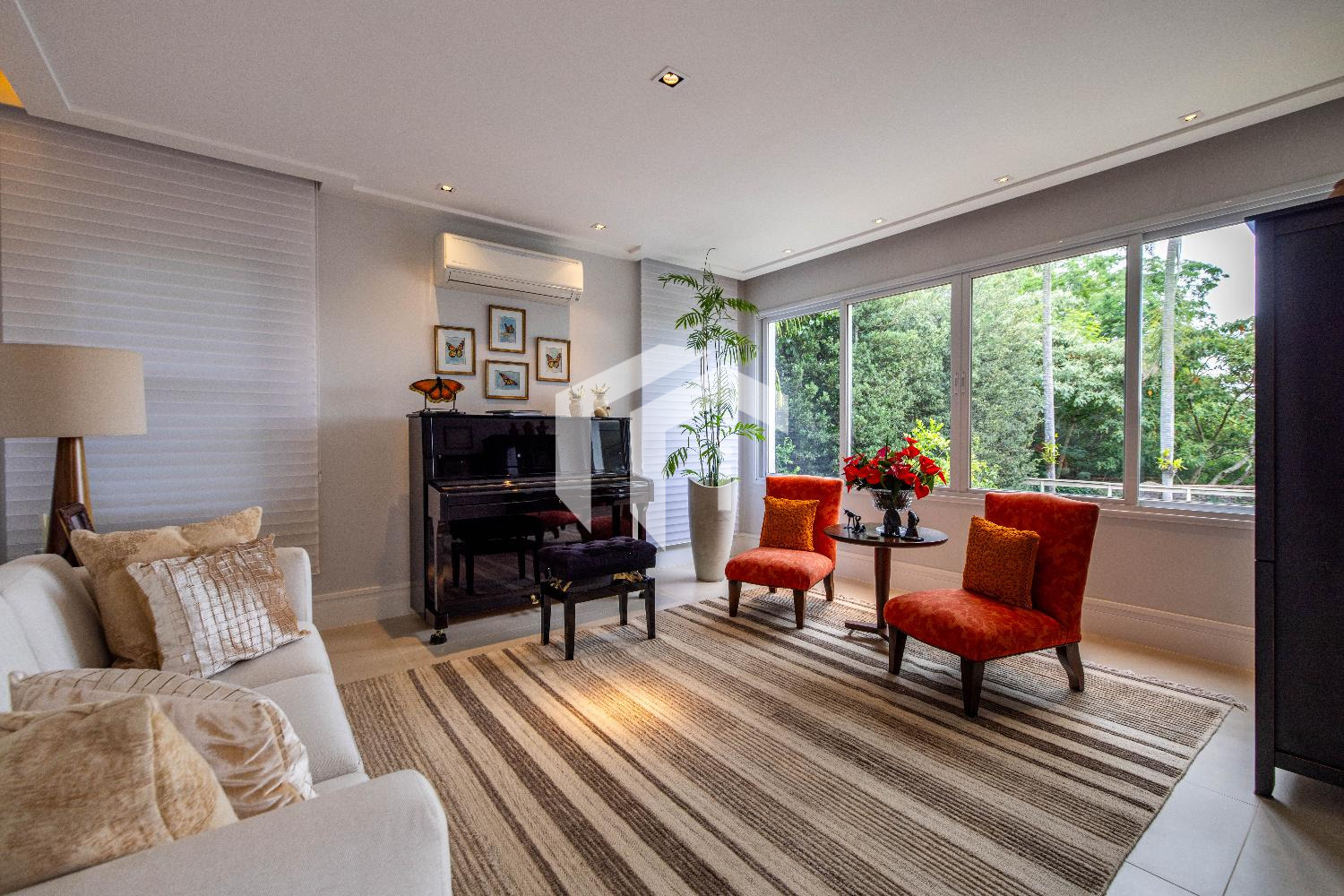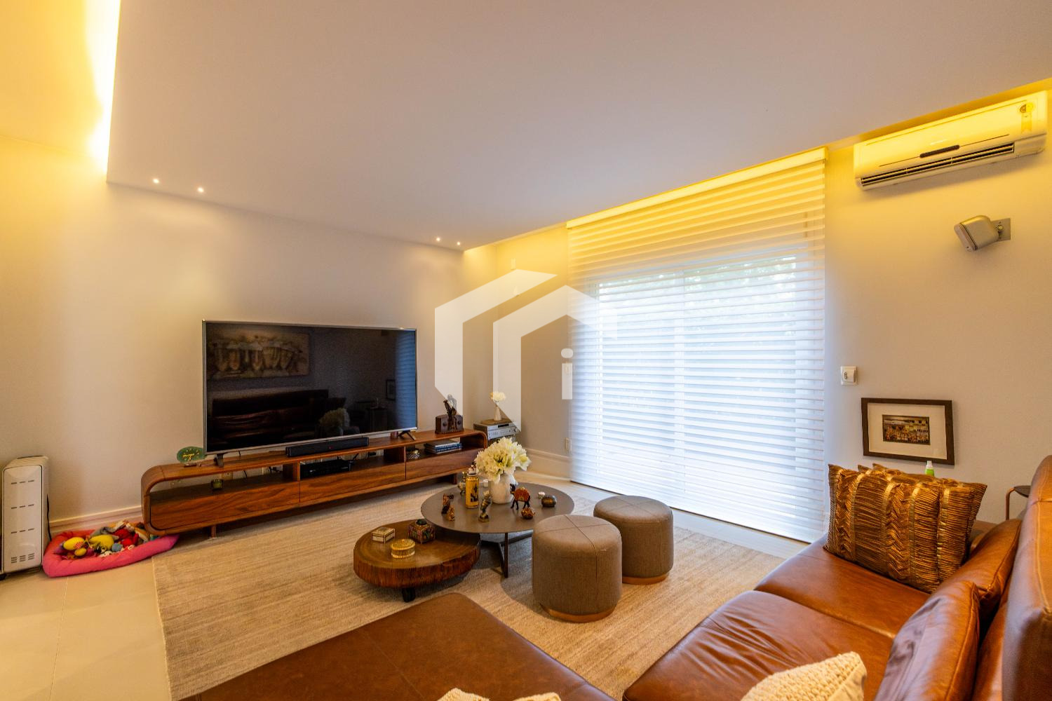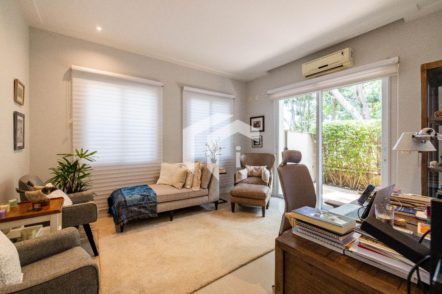 Living climatizado para 3 distintos ambientes, mais, home theater e home office climatizados e apoiados por um lavabo.