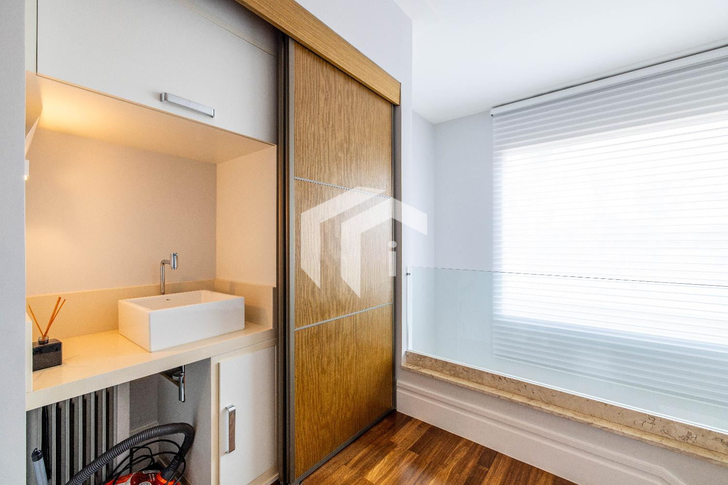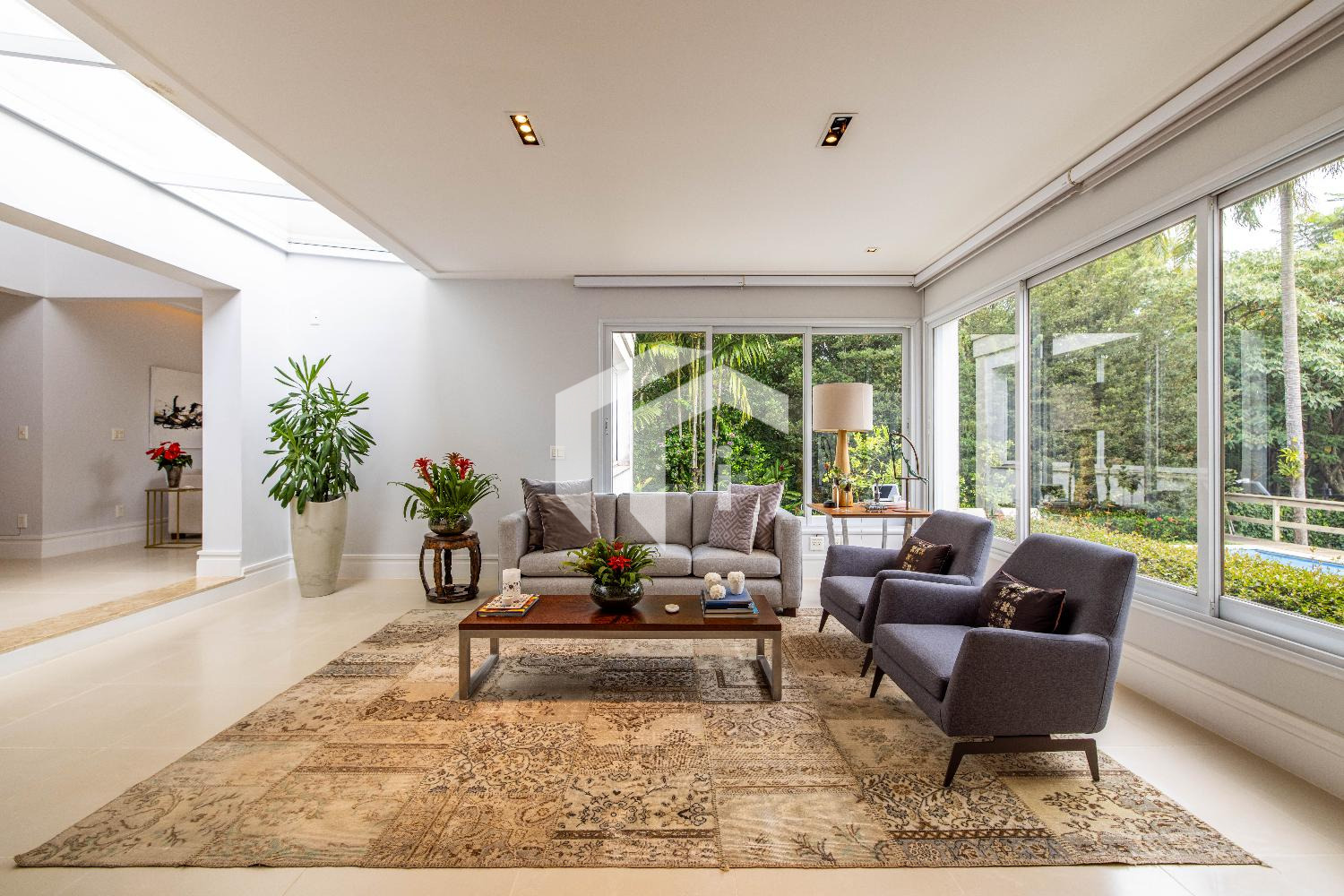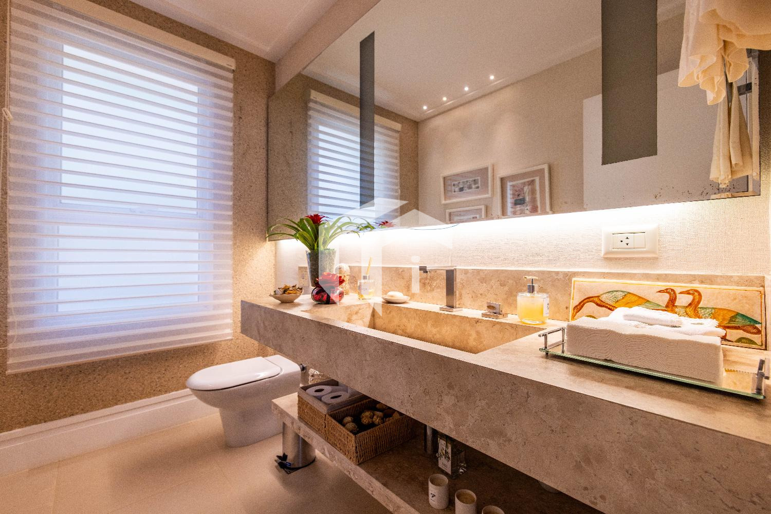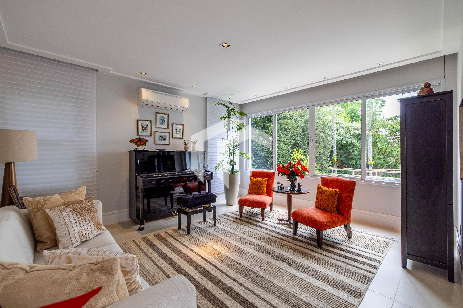 Living climatizado para 3 distintos ambientes, mais, home theater e home office climatizados e apoiados por um lavabo.
