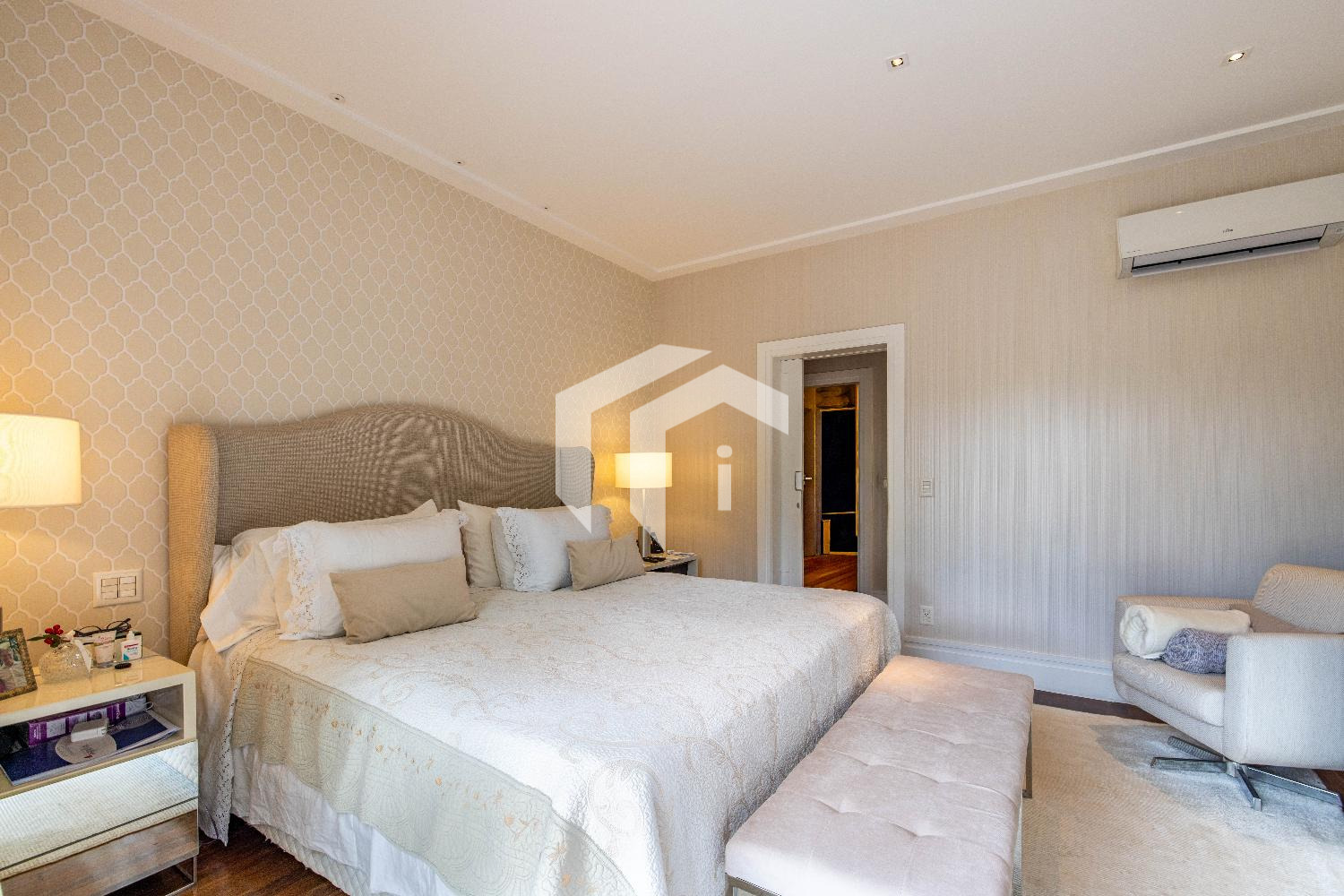 São 4 dormitórios planejados e climatizados sendo 4 suítes (1 master) e todas avarandadas, com uma copa auxiliar de apoio na área íntima.