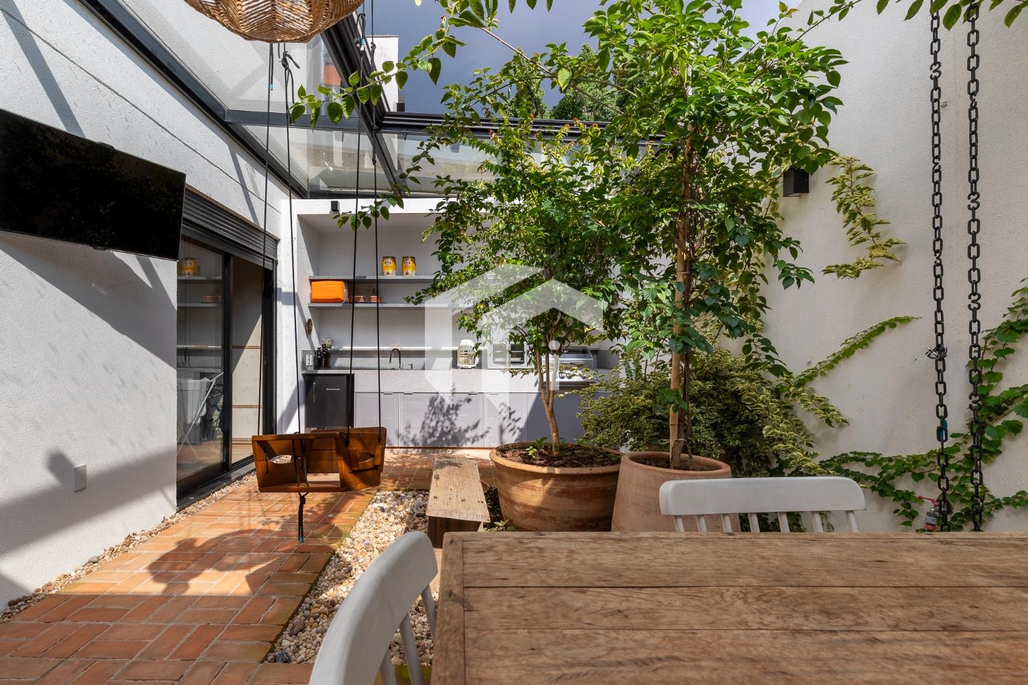Casa com 2 suítes, cozinha aberta, arquitetura contemporânea integrada a sala de estar que comunica com quintal, espaço gourmet com churrasqueira.