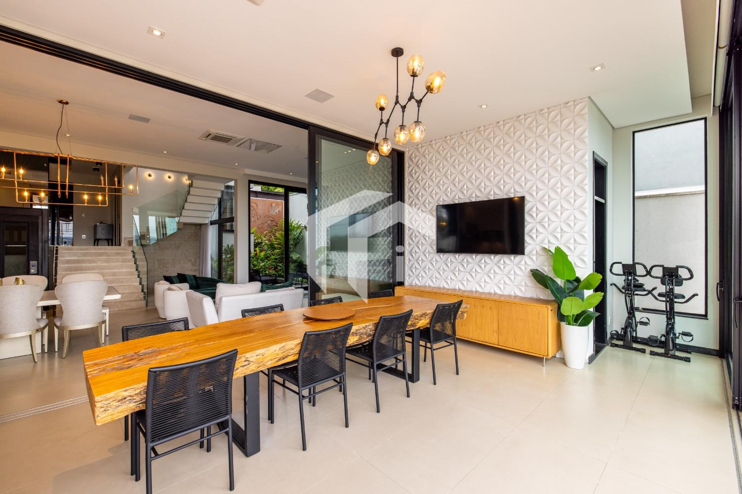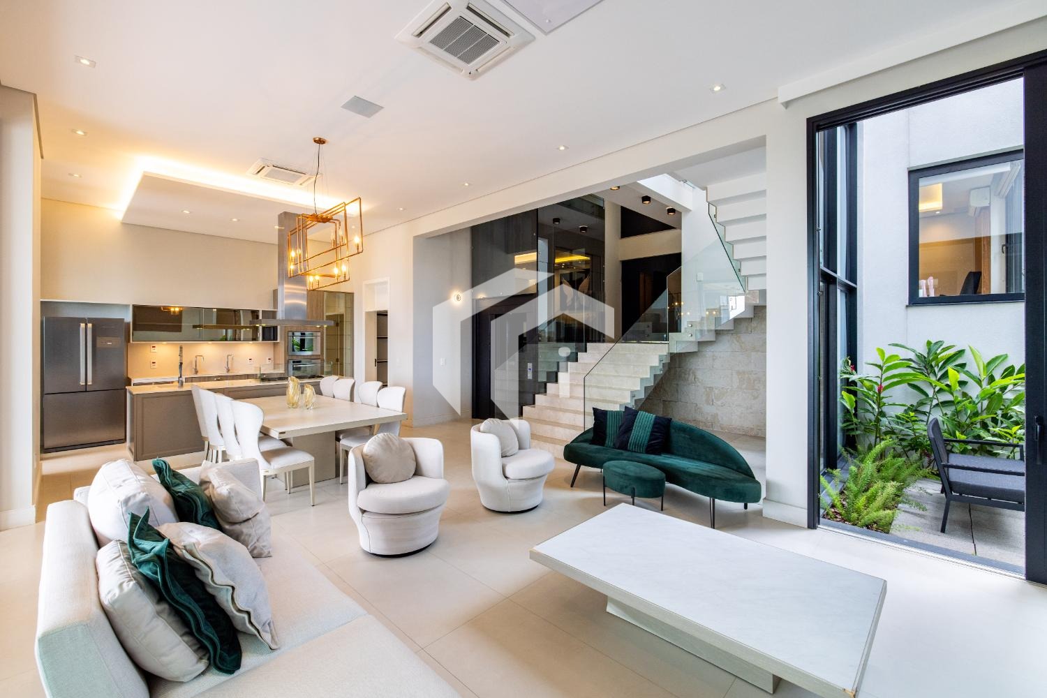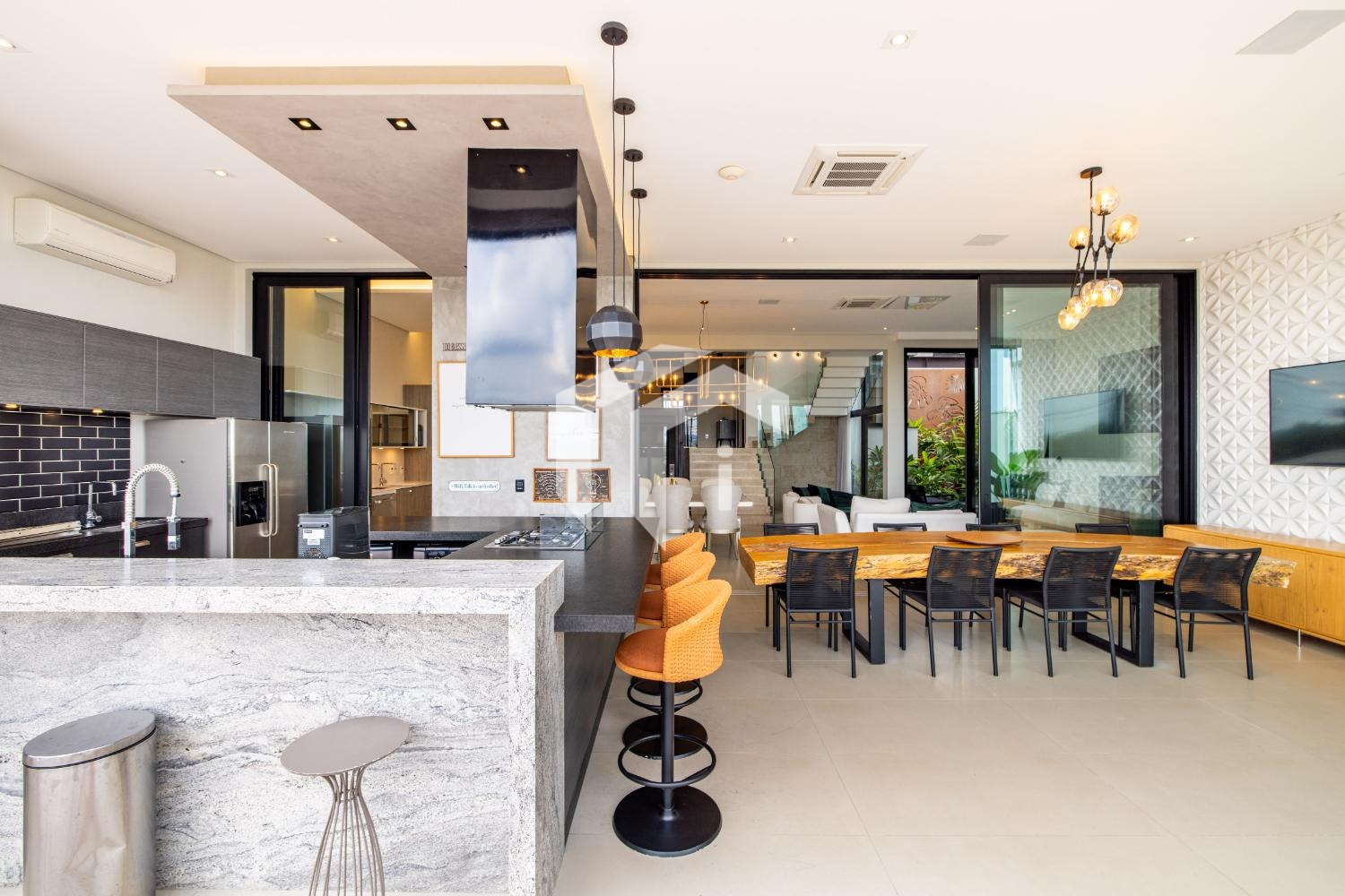 A casa é totalmente tecnológica, com soluções que elevam a experiência de morar, além de acabamentos de altíssimo padrão, como marcenaria Florense e esquadrias em alumínio preto, que trazem elegância e identidade ao projeto.