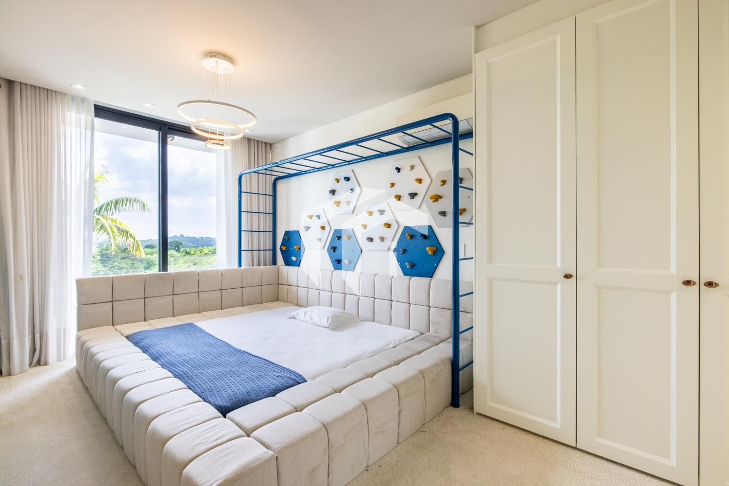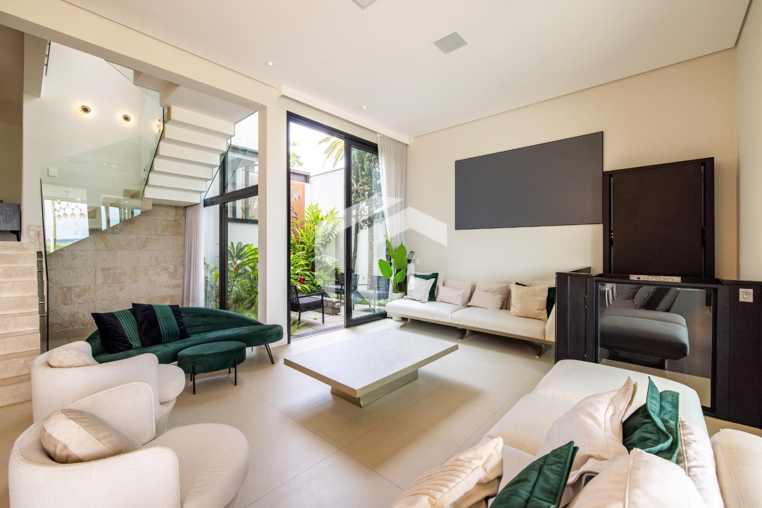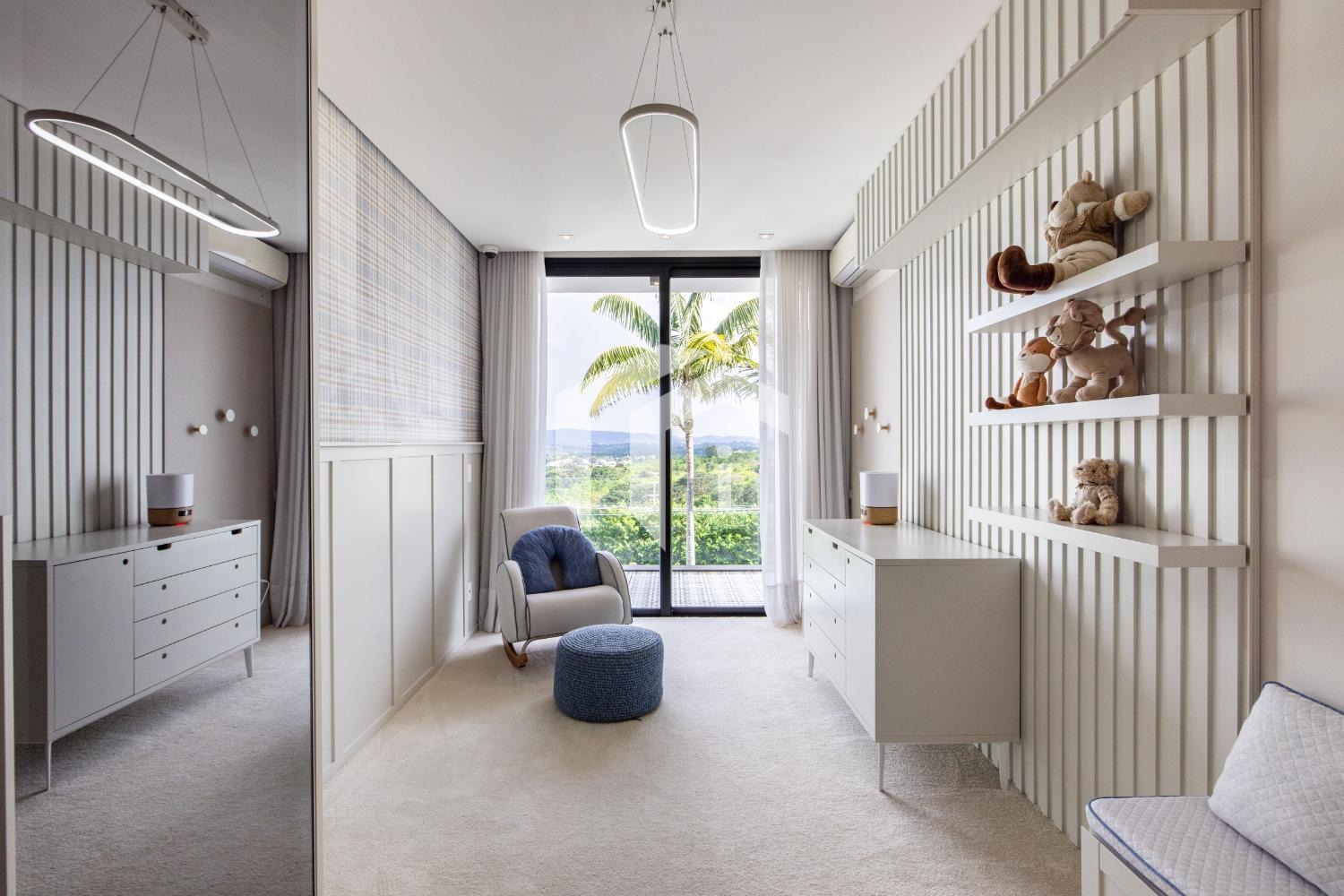 A casa é totalmente tecnológica, com soluções que elevam a experiência de morar, além de acabamentos de altíssimo padrão, como marcenaria Florense e esquadrias em alumínio preto, que trazem elegância e identidade ao projeto.