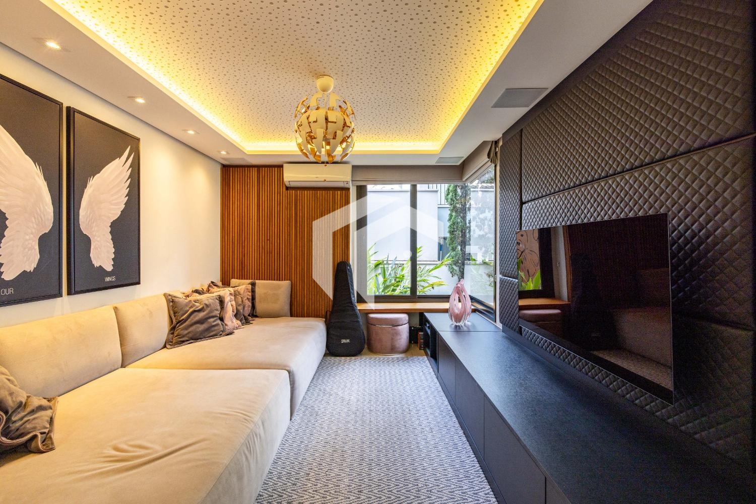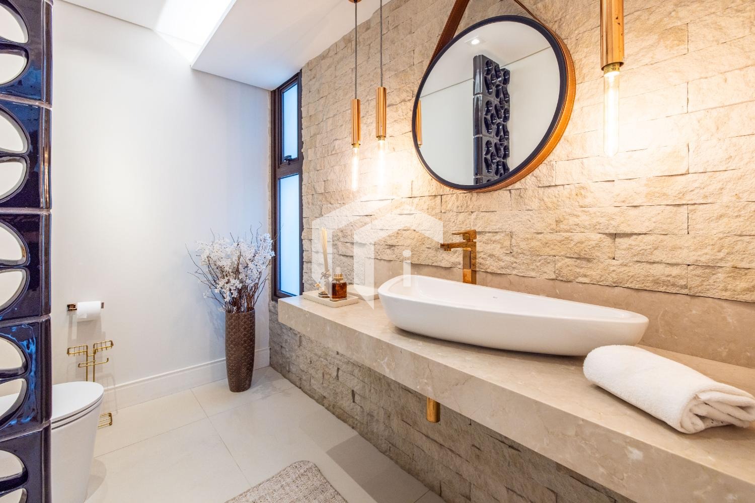 Os ambientes sociais são amplos e integrados, com destaque para o elegante living, o refinado home theater e um lavabo chiquérrimo, que impressiona pelo design e acabamento.