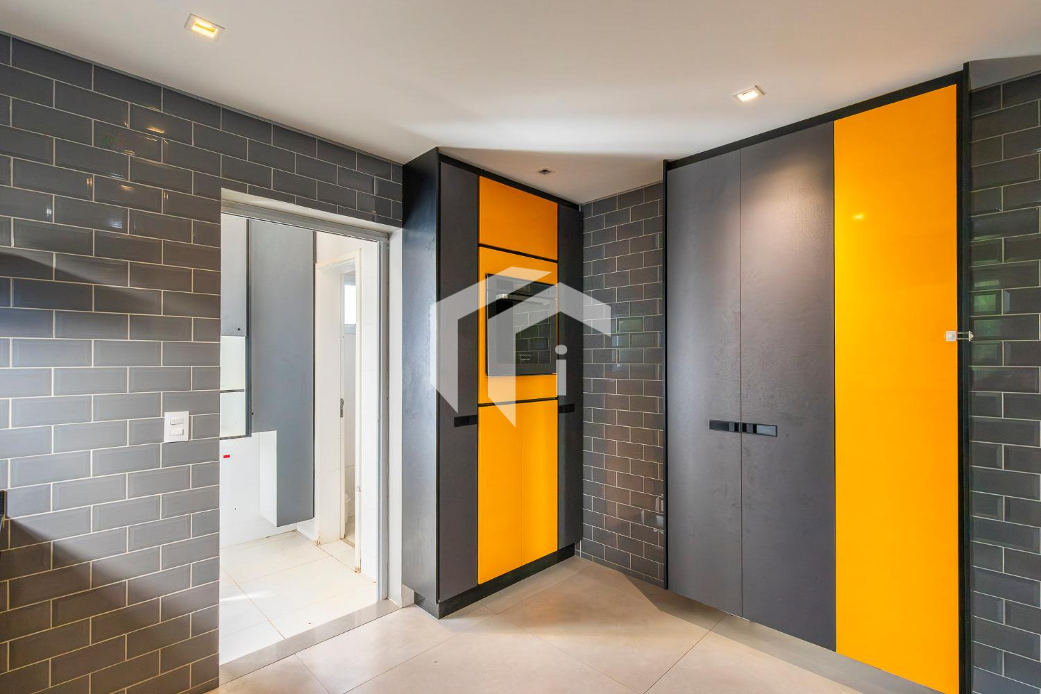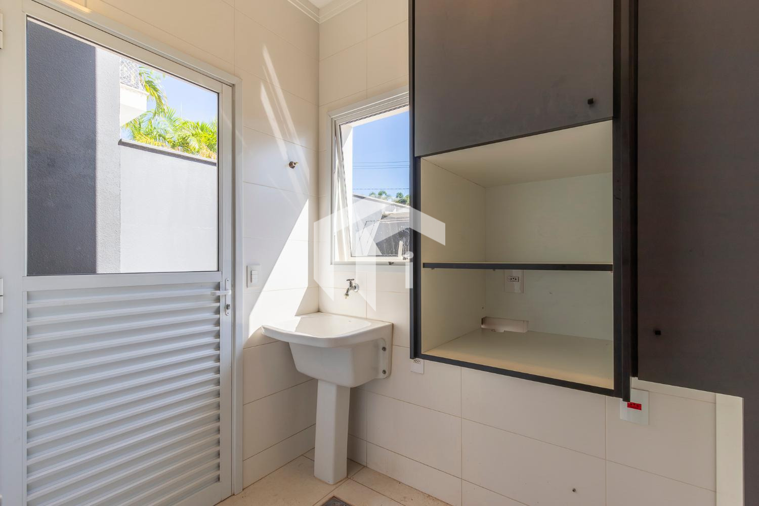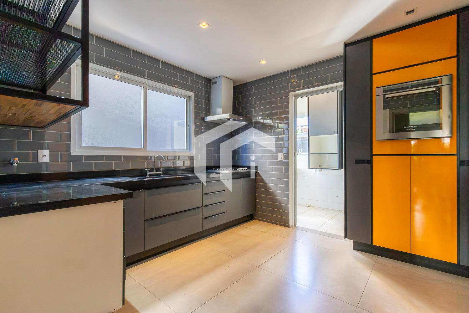 Cozinha rica em planejados e área de serviço com wc de serviço.
