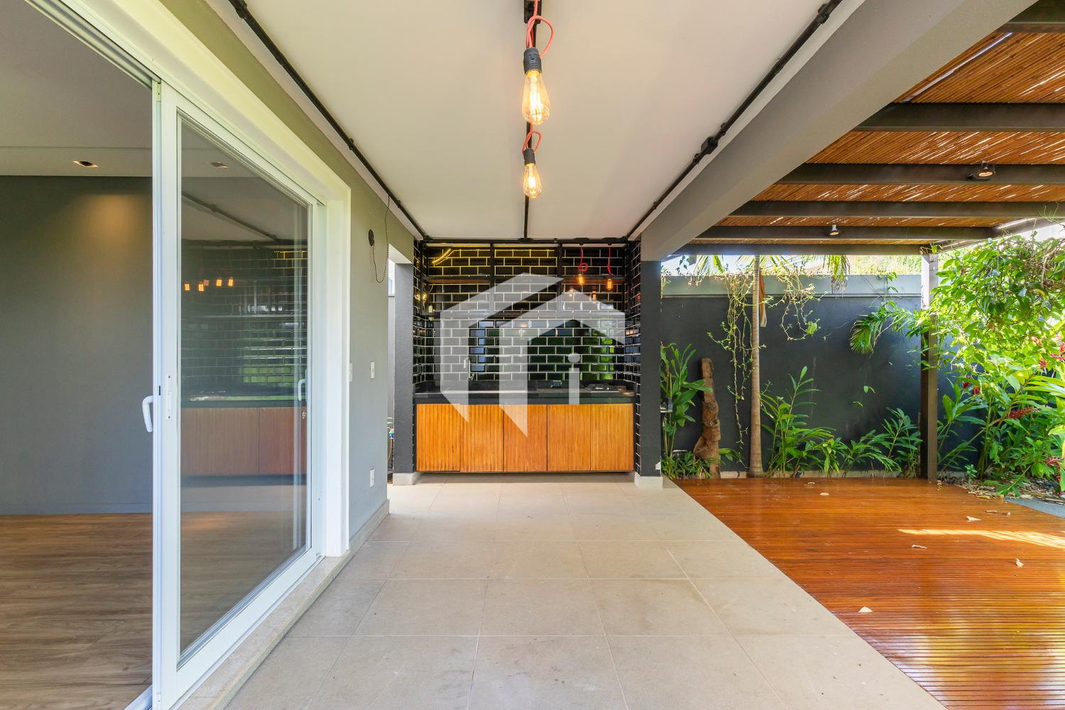 Amplo e confortável living para 3 ambientes com lavabo e integrado à uma convidativa varanda para sua churrasqueira CharBroiler, com um quintal gramado.