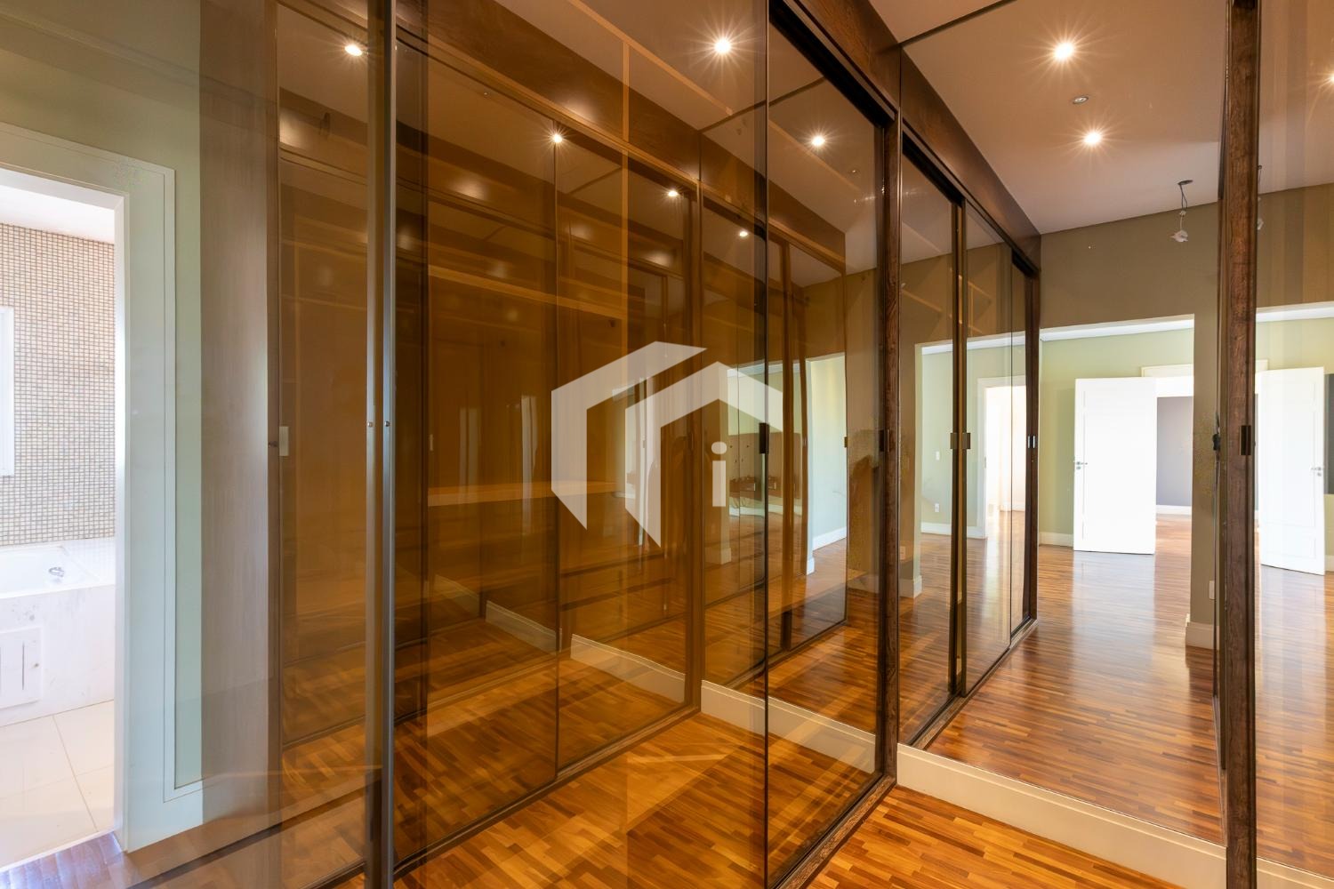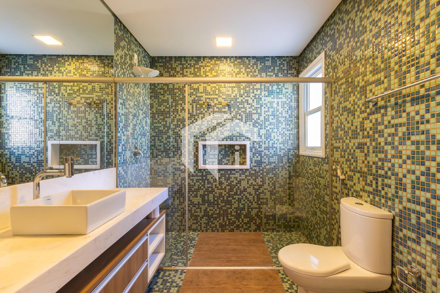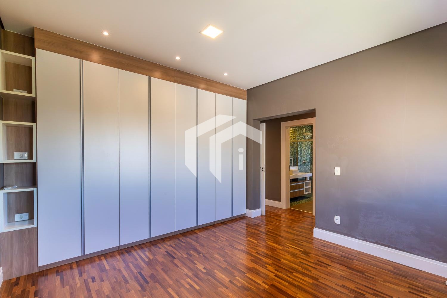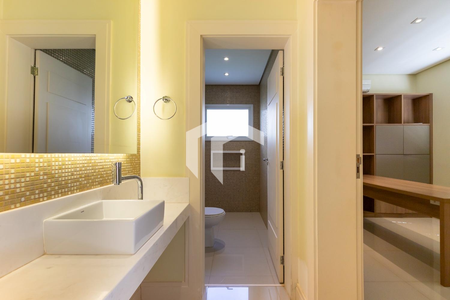 No piso térreo, o living em “L” impressiona pela amplitude e integração, com grandes portas-balcão que conectam os ambientes internos à área gourmet, criando uma atmosfera perfeita para receber. O imóvel conta ainda com um elegante home theater e um escritório, que pode ser facilmente adaptado para uma suíte térrea.