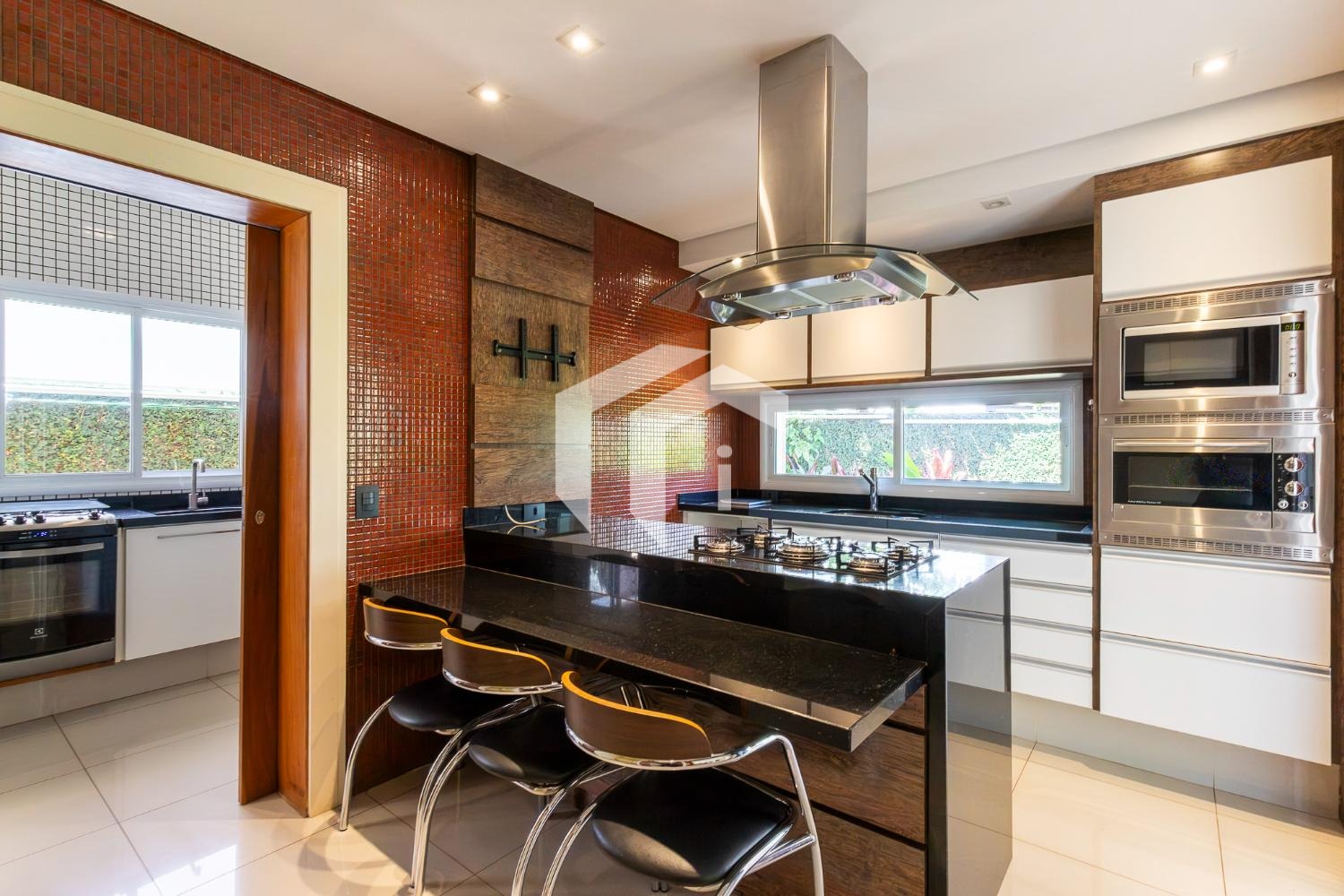 A residência dispõe de duas cozinhas, oferecendo praticidade e funcionalidade no dia a dia, além de um espaço reservado para secretária do lar com dependência completa.