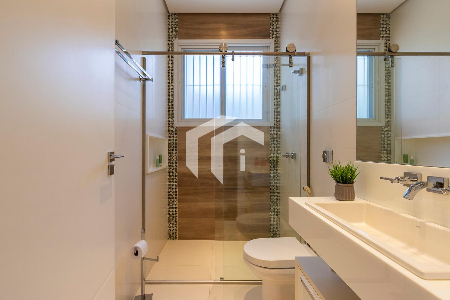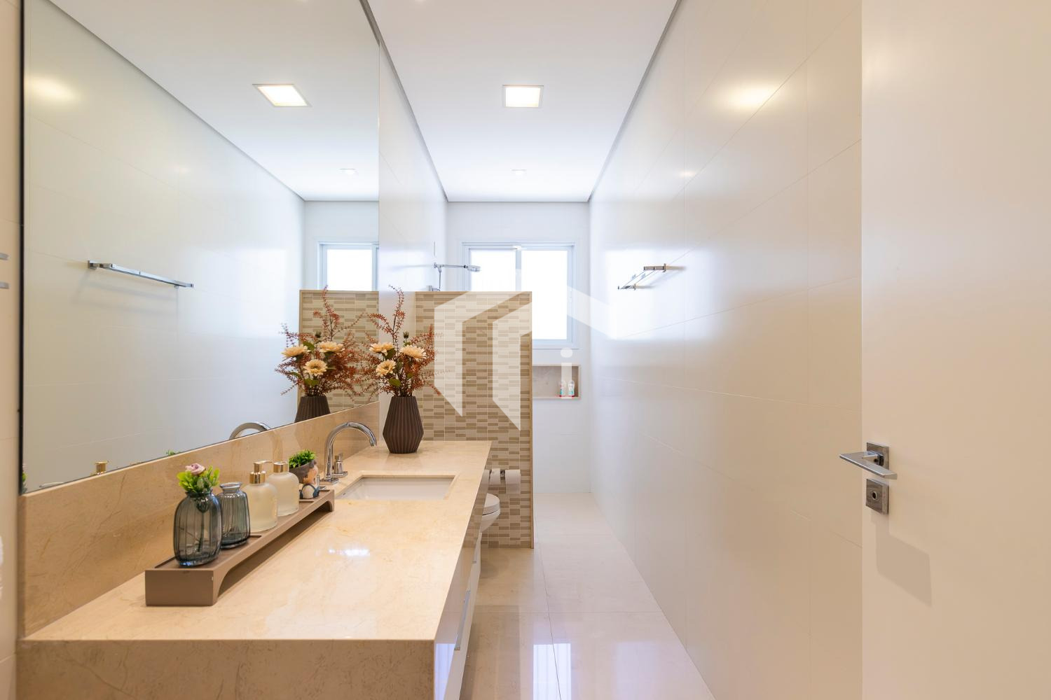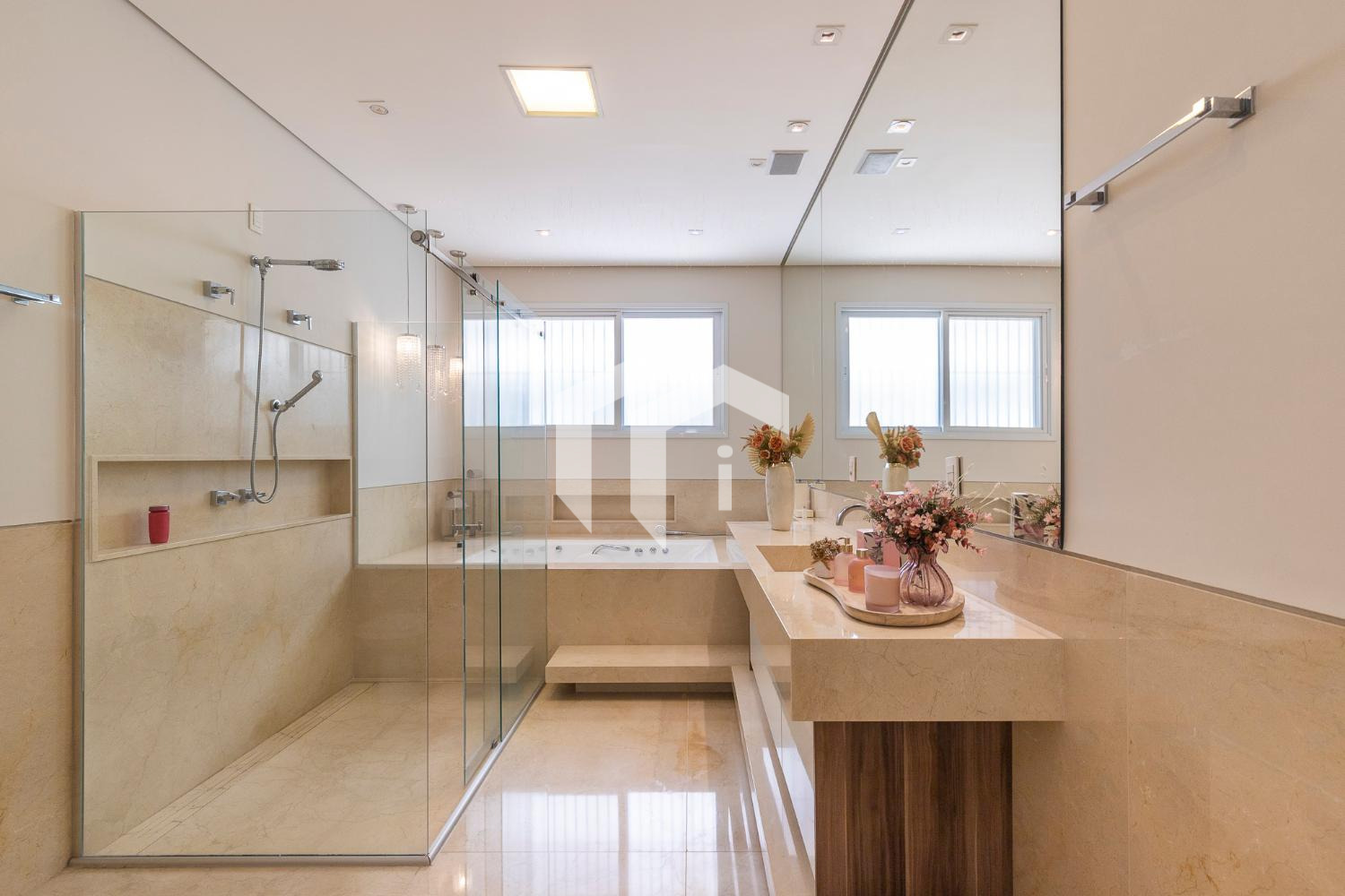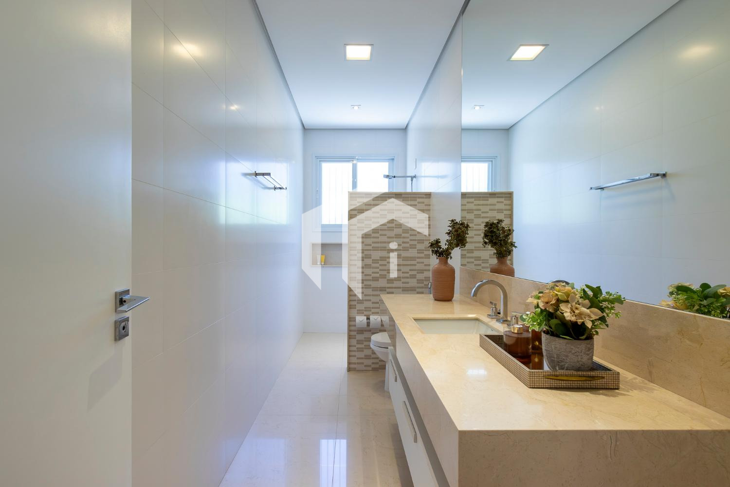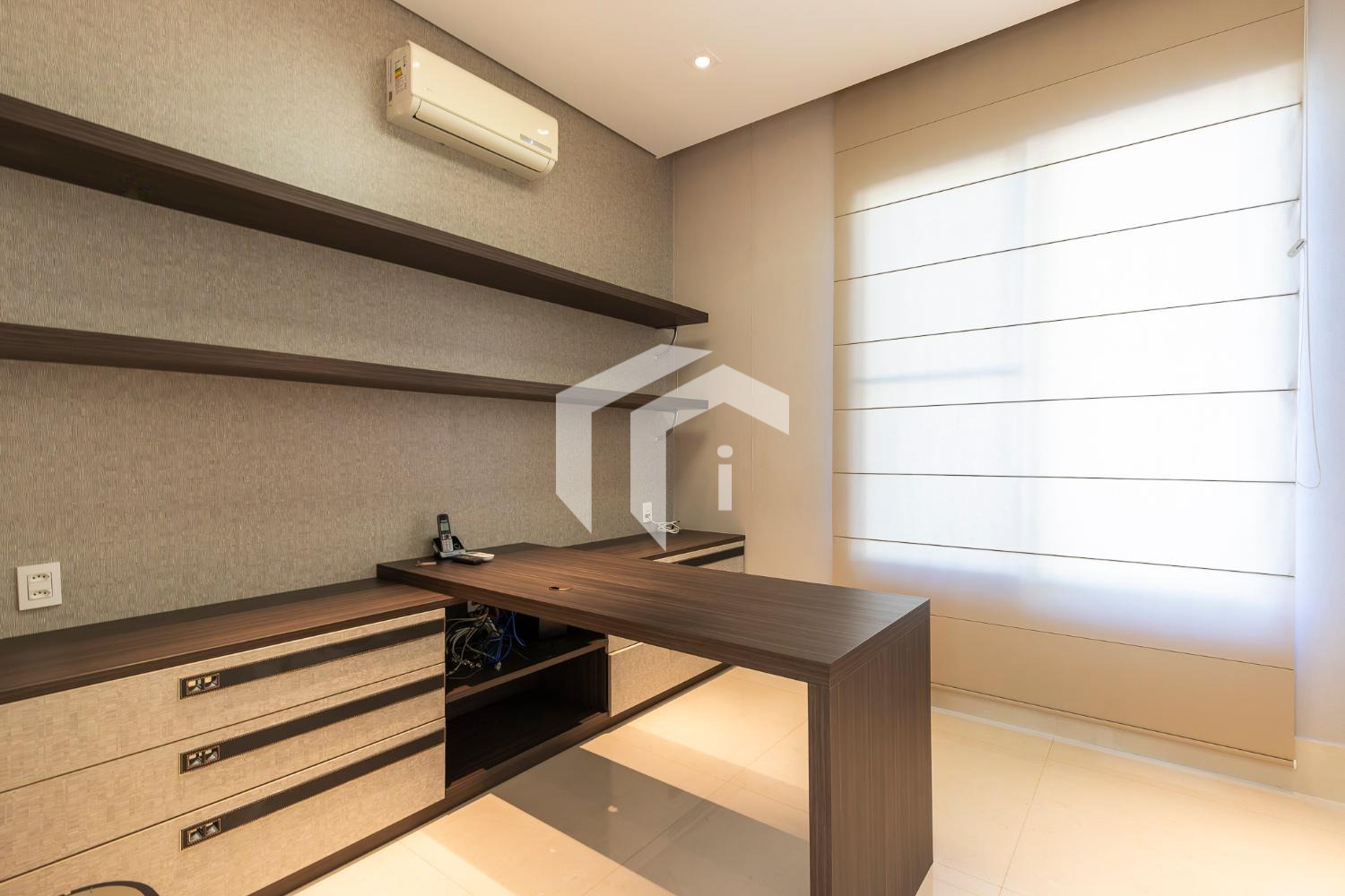 Living climatizado para 3 ambientes com pé direito duplo mais uma convidativa lareira, mais, home theater e home office, com o conforto do lavabo.