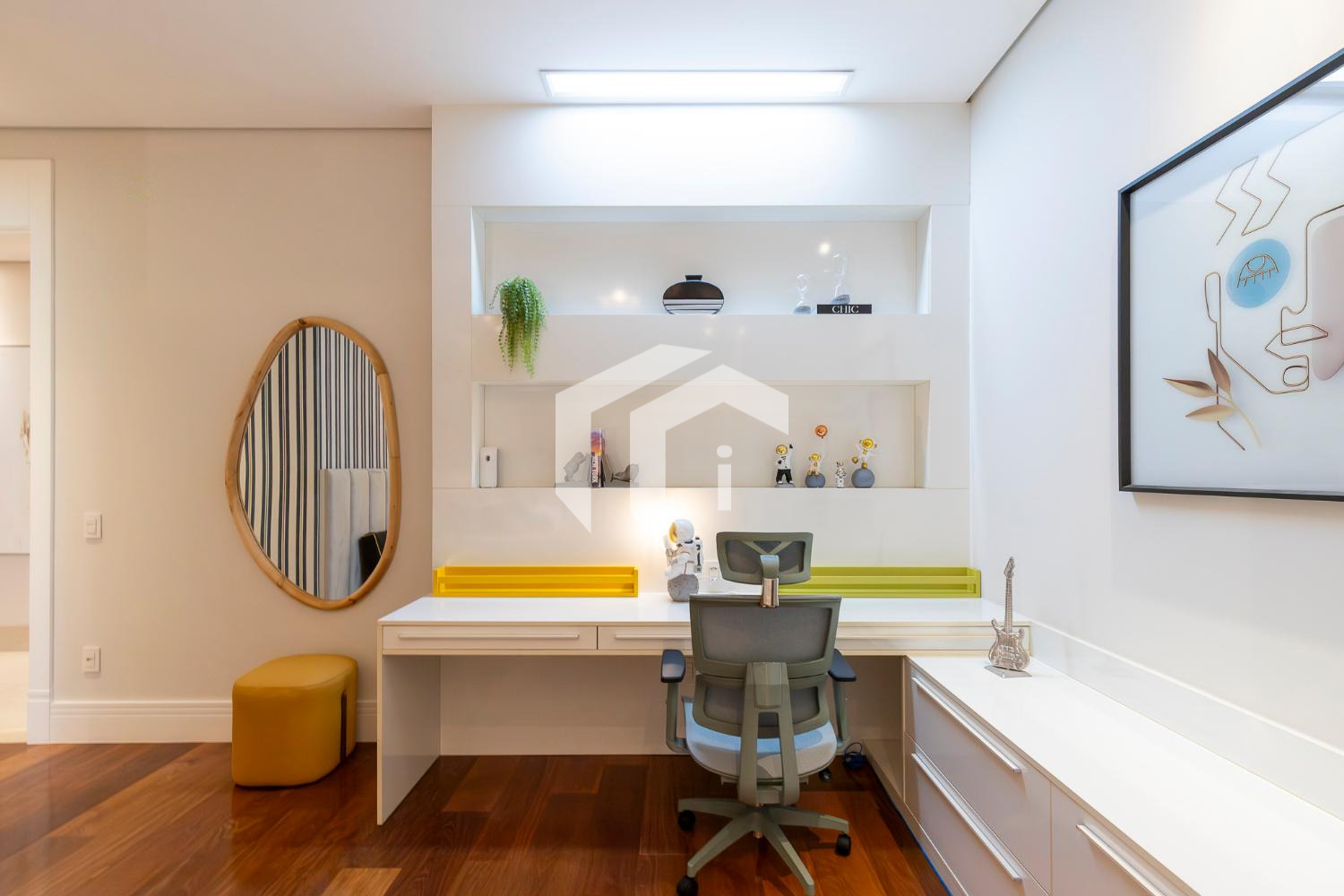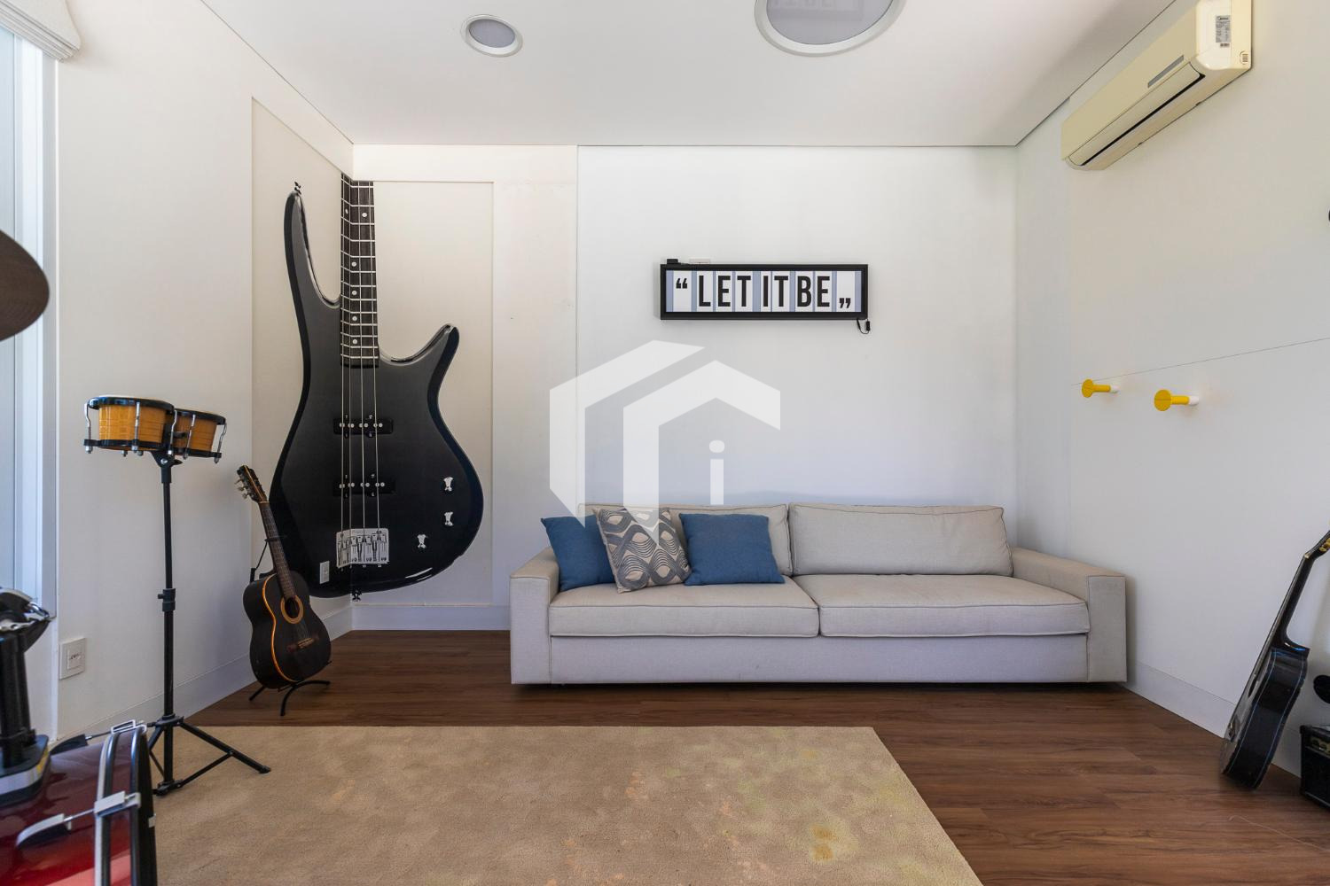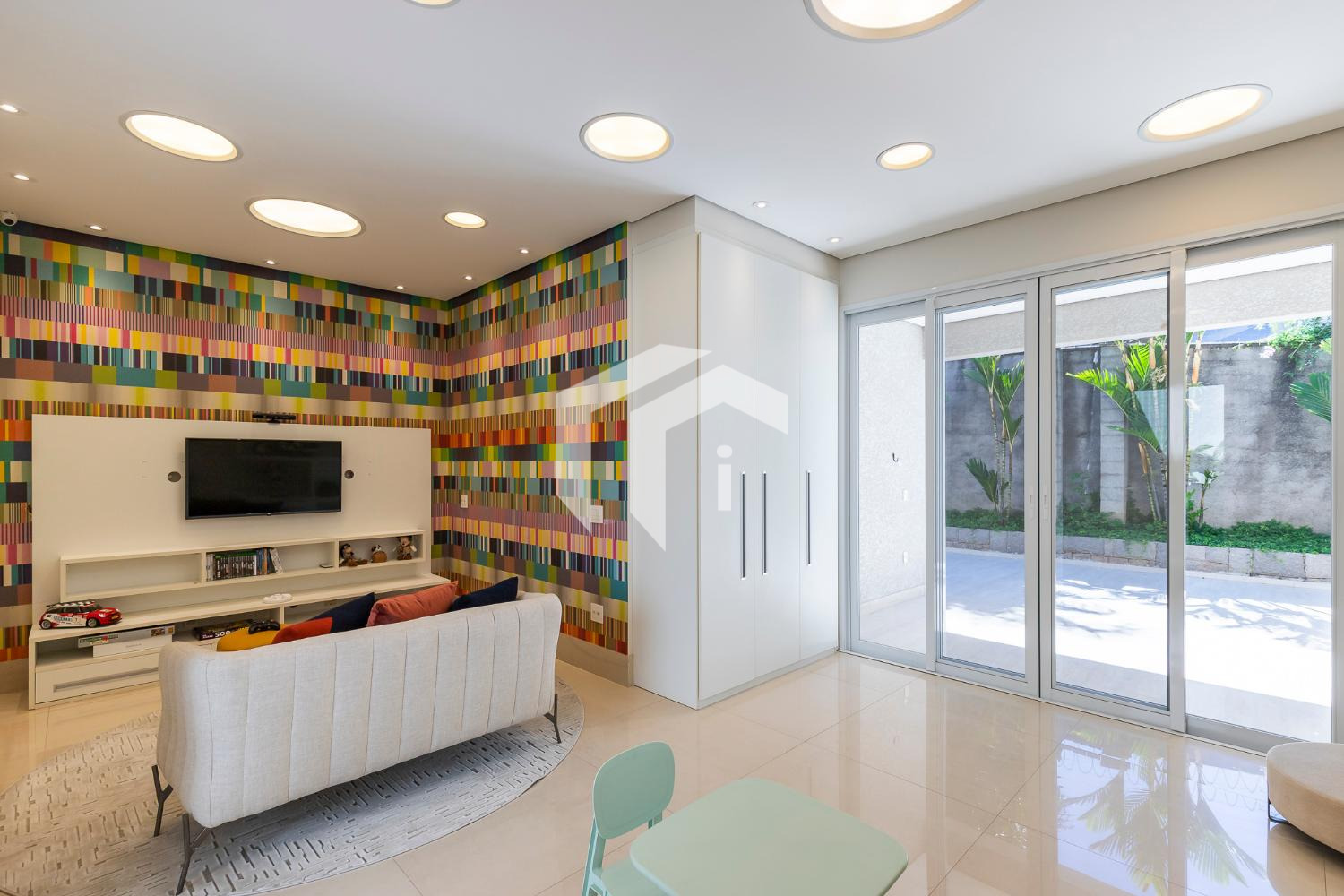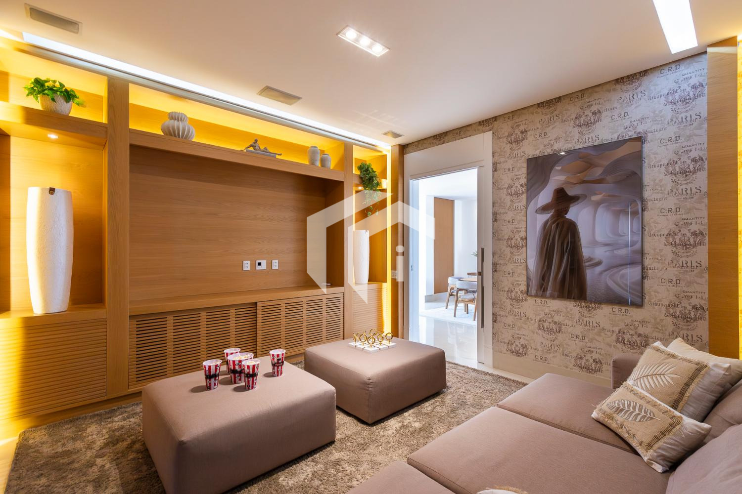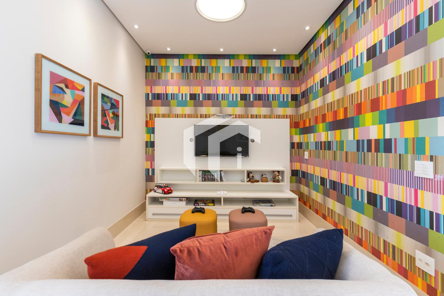 Sala de game ou sua futura adega entre as áreas sociais e íntima do imóvel.