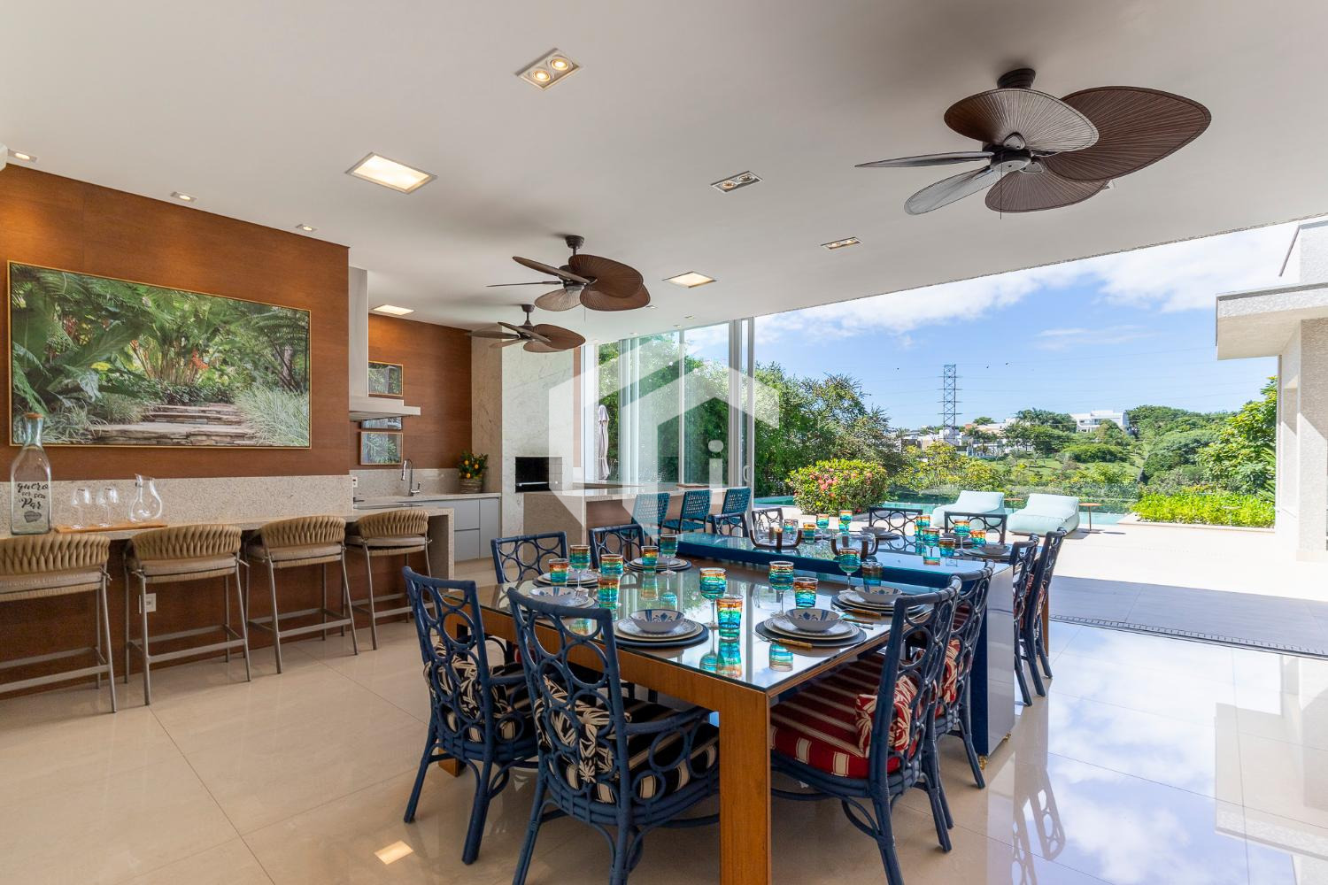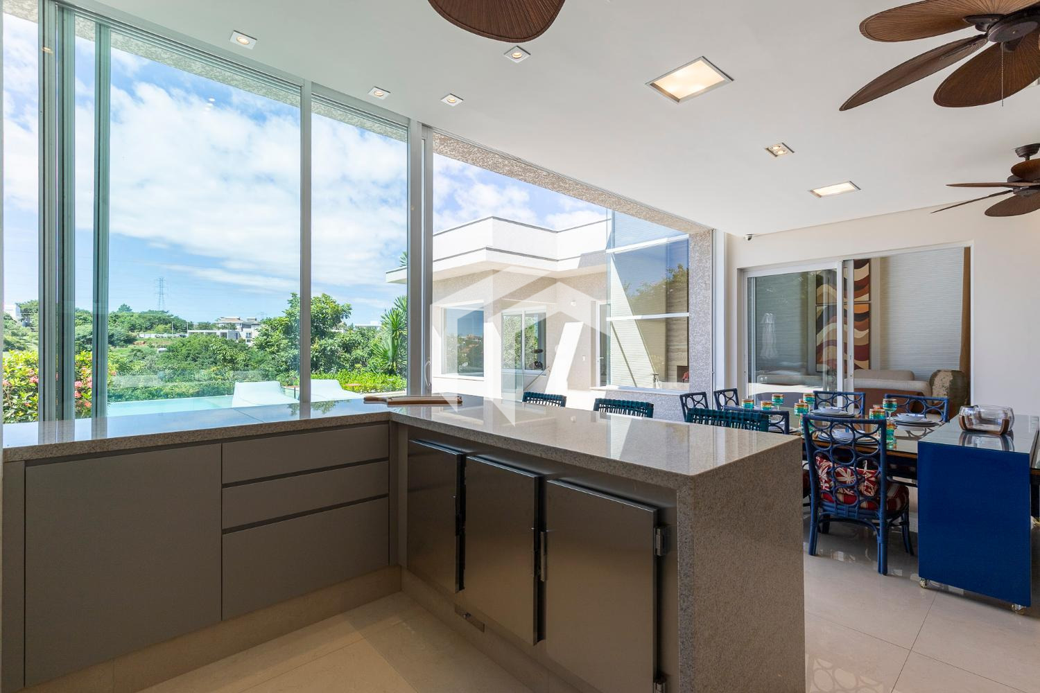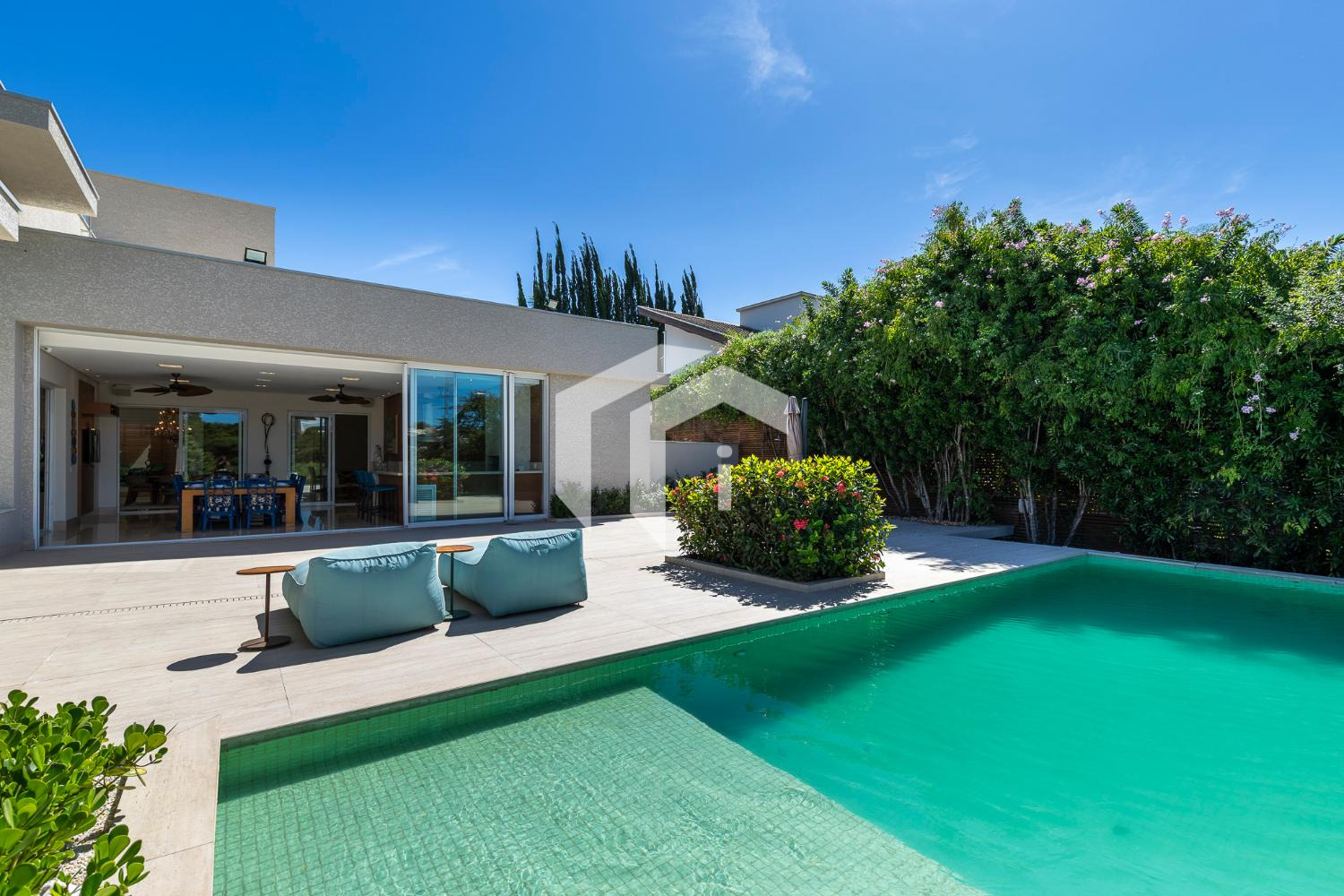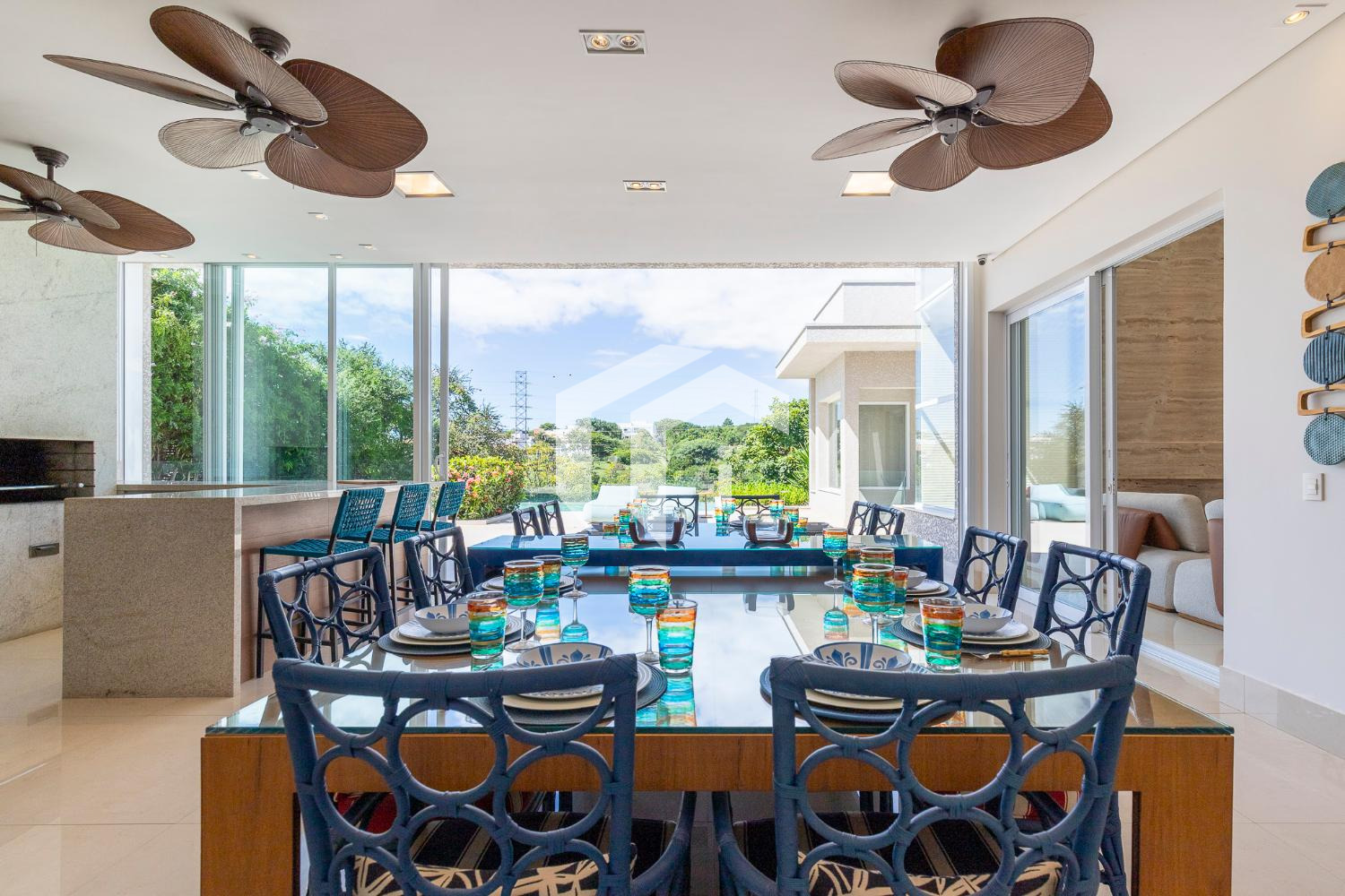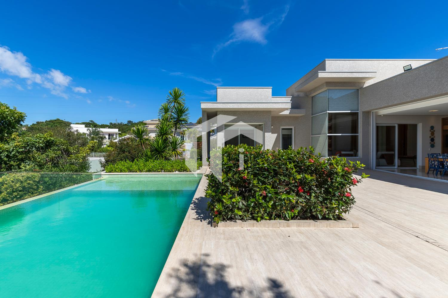 CASA DIFERENCIADA, TODA EM PLANO TÉRREO, FINÍSSIMA NO ACABADO, COM RICA ESTRUTURA DE LAZER E UMA VISTA ÚNICA DA ÁREA DE PRESERVAÇÃO.