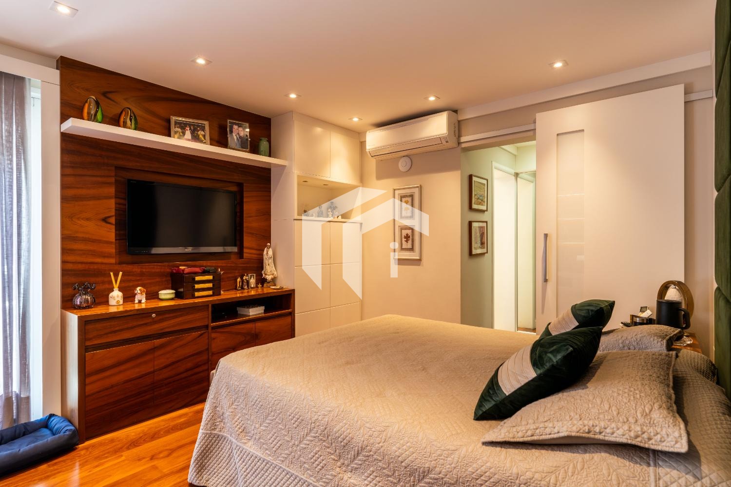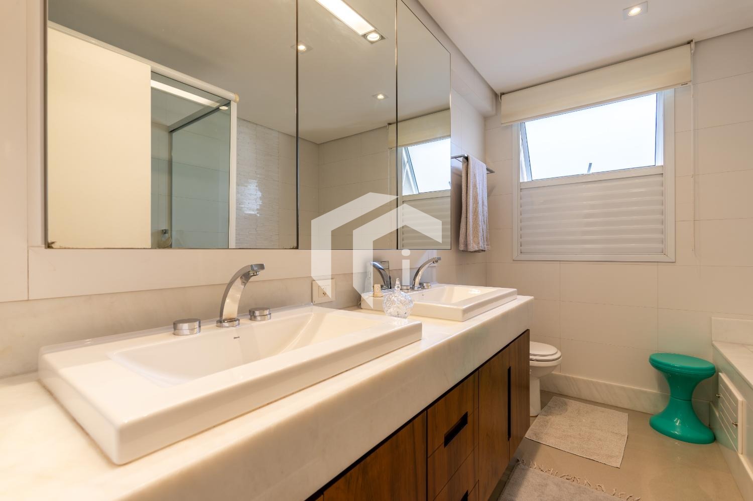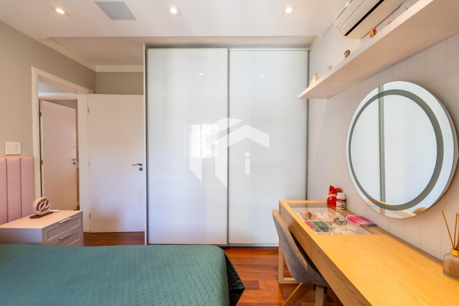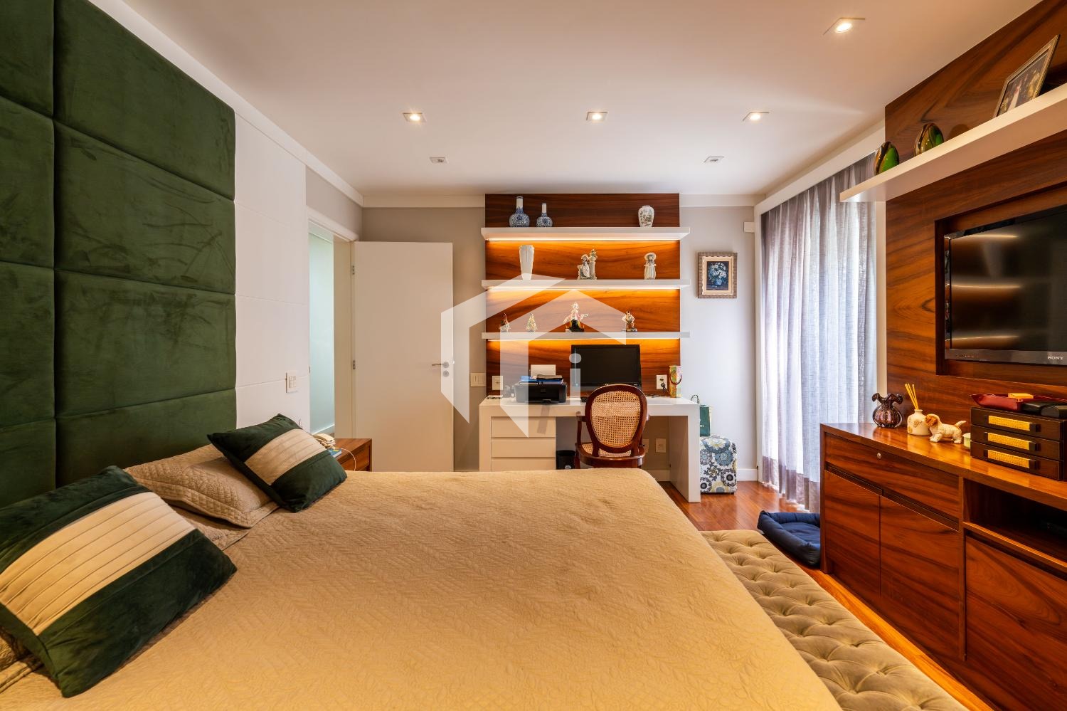 No piso superior encontramos 4 suítes, sendo uma master com closet, todas climatizadas e ricas em armários.