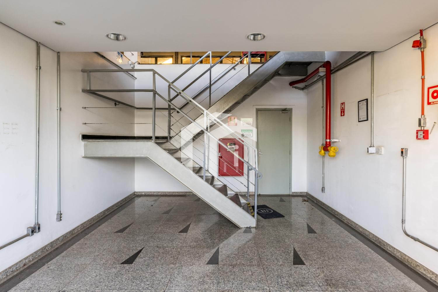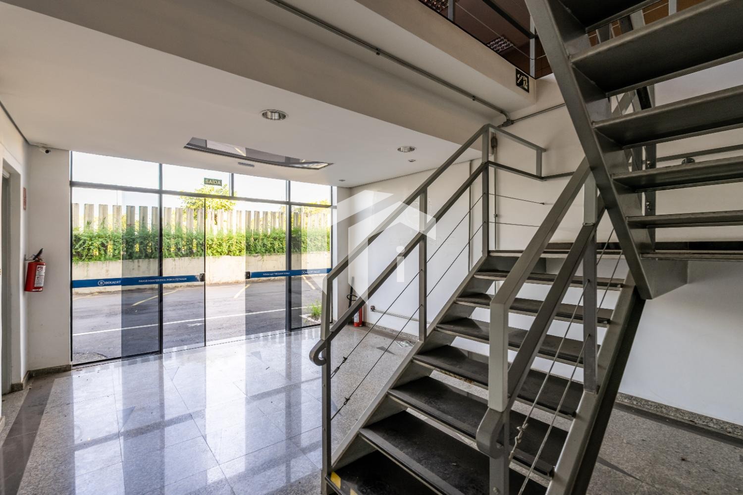 Entrada social destinada a pedestres, proporcionando acesso à recepção e aos escritórios presentes em ambos os galpões.