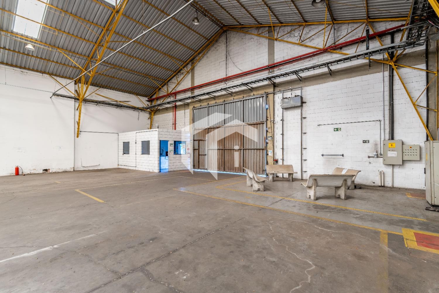 Vestiários disponíveis em ambos os galpões.
