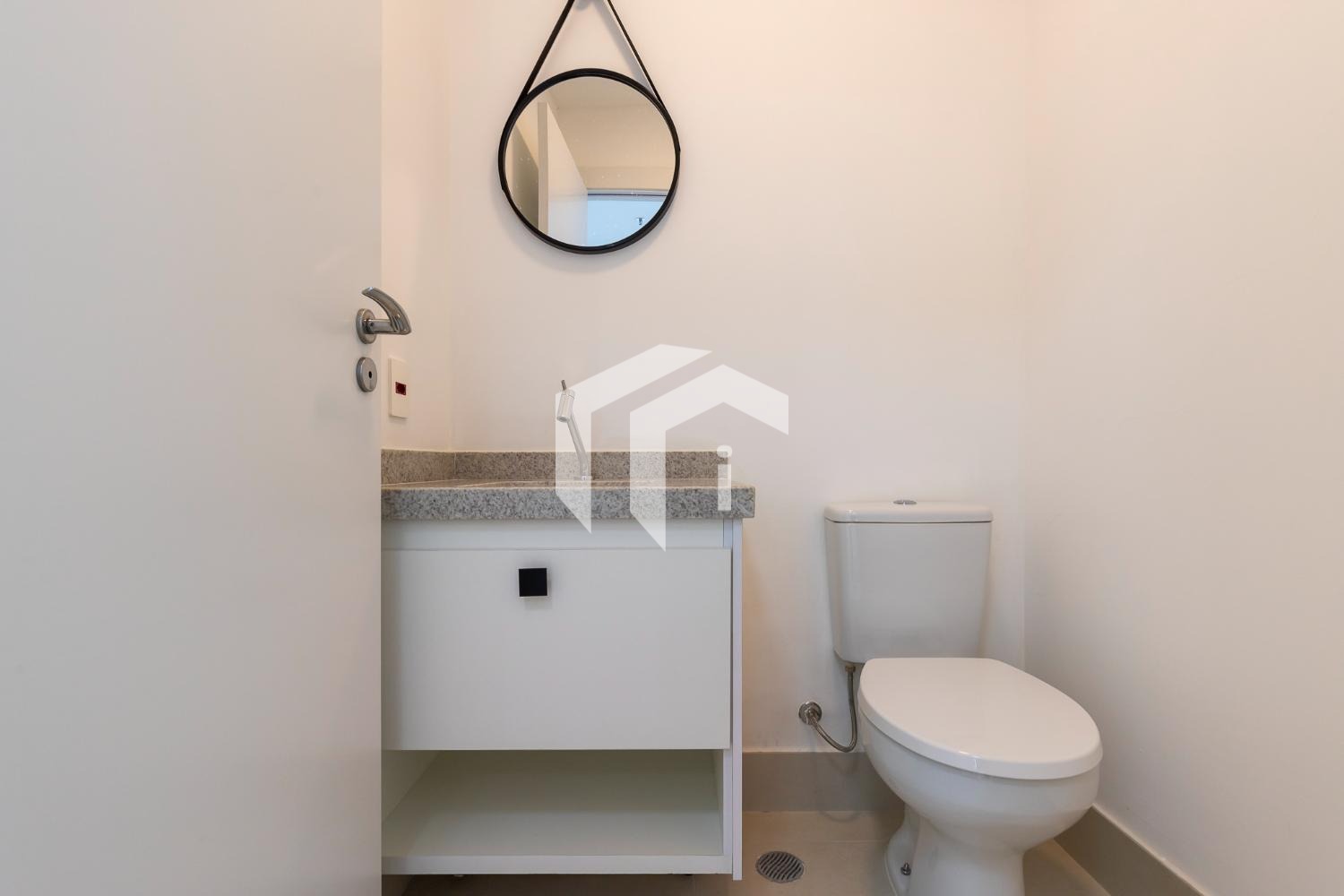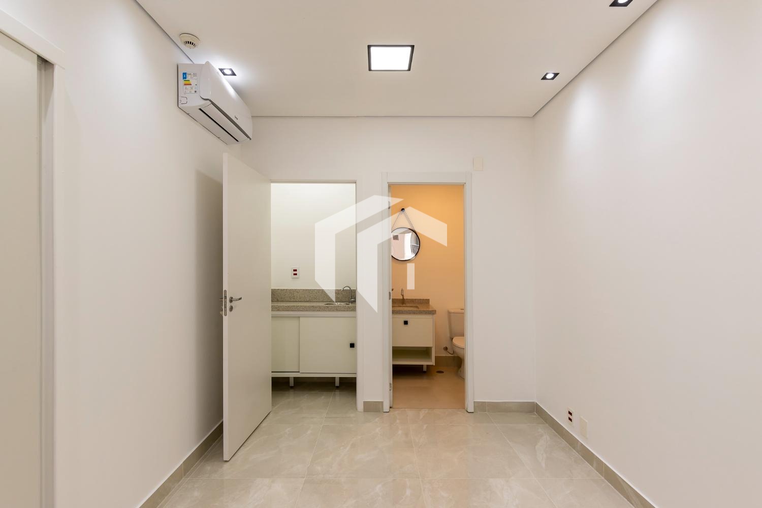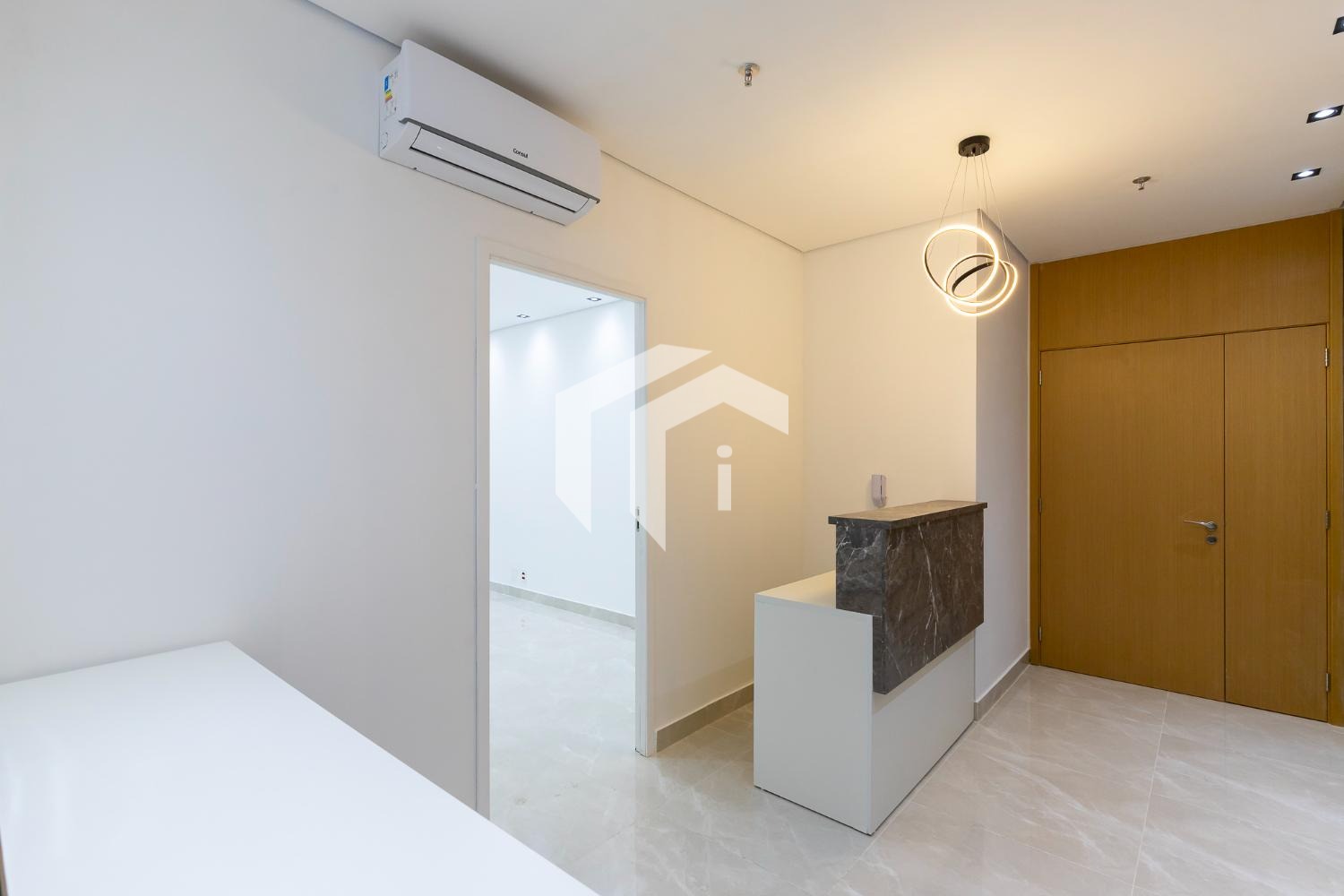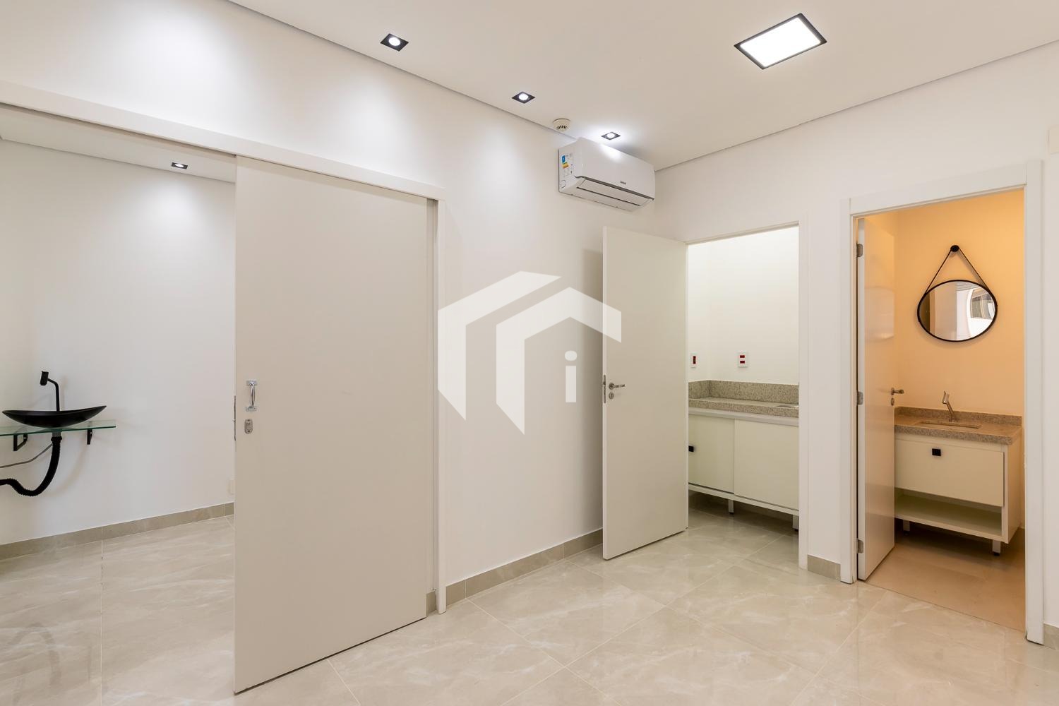 Toda acabada com piso, ar condicionado, móveis planejados e iluminação, além de 2 lavabos e uma copa de apoio.